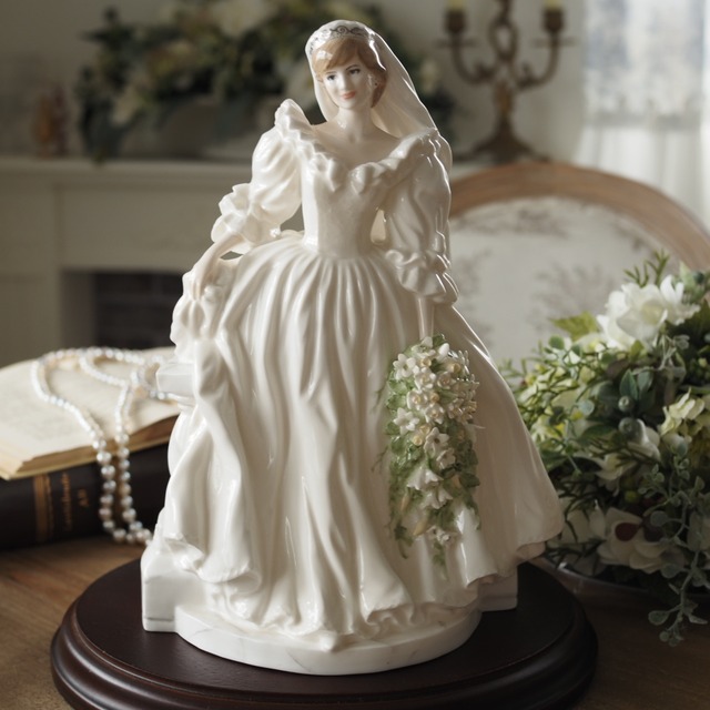 ☆★素敵な品格のコールポート・”Diana”★☆ ダイアナ妃をモデルにしたとても豪華で上品なフィギュリンです。 ダイアナのフィギュリンは他にもたくさんありますが、こちらのモデルは、5000個限定で作成されたシグネチャーエディション”The Pricess of Wales”です。 大理石風のバルコニーやダイアナのちょっと体を傾けた姿勢がとてもかわいらしく素敵です☆ このフィギュリンは大変人気で、海外でも高額で取引されています。 また、フィギュリンはお顔が命!こちらのフィギュリンは、どの角度から見ても完璧なお顔立ちで、特に目がとてもきれいに描かれています。 ドレスもボリュームがあり豪華で、このフリルのドレスを見るとダイアナ妃の結婚で沸いた当時のことを思い出しますね!(いい時代でした…) 特に目を引くのが大きなブーケ!たくさんのお花がちりばめられ、とっても高級感があります! ■商品内容■ コールポートフィギュリン・”The Pricess of Wales”★台座付き ※限定生産5000個の大変希少なお品です! ■商品寸法■ 高さ約24cm 幅18cm 奥行き17cm ■状態■ 割れ、欠け、ヒビなどなく、大変状態のよい綺麗なお品です。 ■発送方法■ 大切なお品ですので、丁寧に梱包して発送いたします。 輸送箱は、環境面からリユースさせていただておりますのでご了承ください。 アンティーク、ヴィンテージ品にご理解の上ご購入いただきますようお願いいたします。