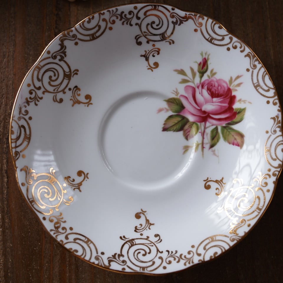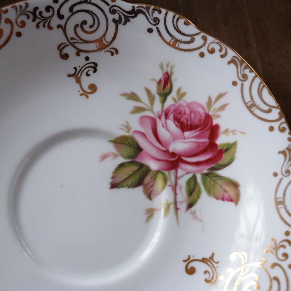 極美品 英国 素敵 パラゴン 上品なローズ柄 トリオ カップ&ソーサー F2