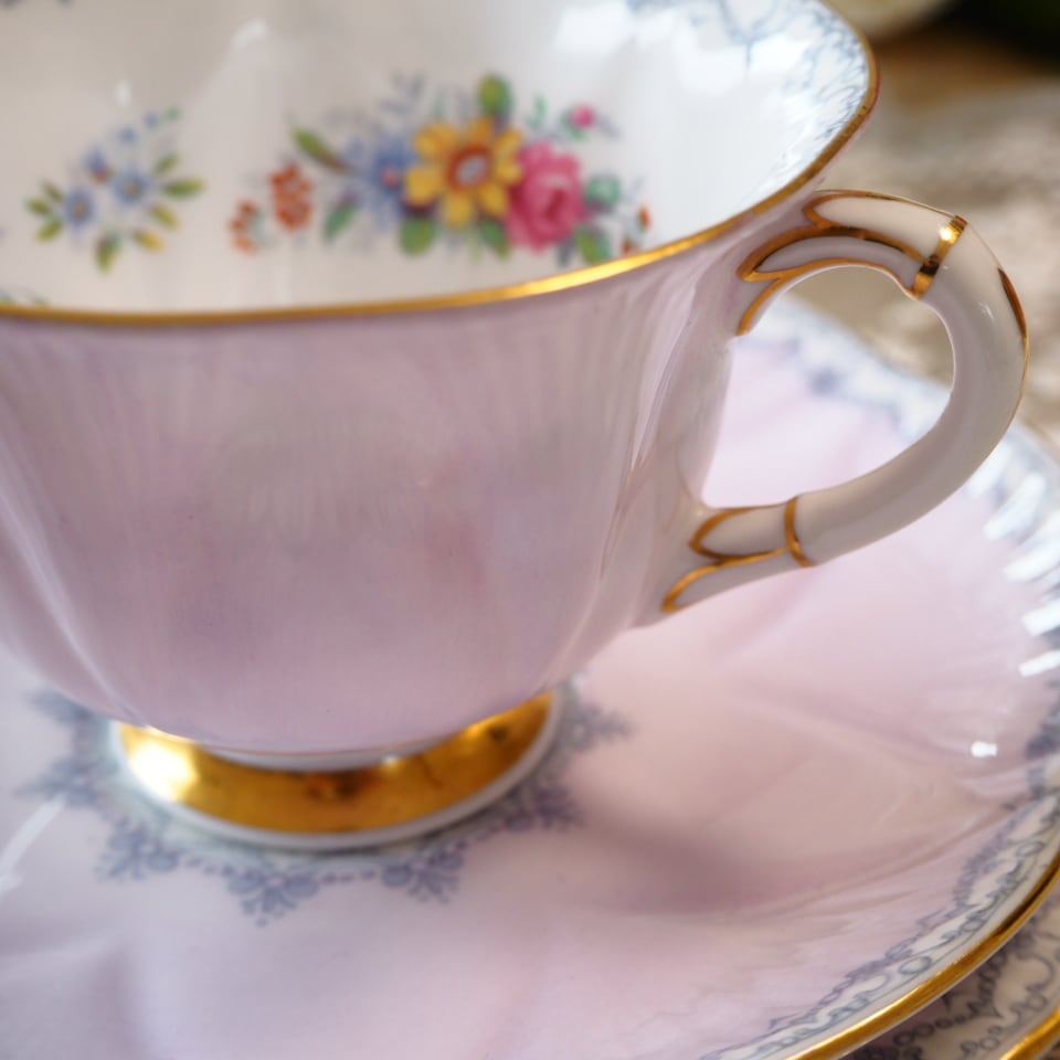 訳あり ~幻のライラック~シェリー クロッシェ トリオ1客E カップ&ソーサー F2