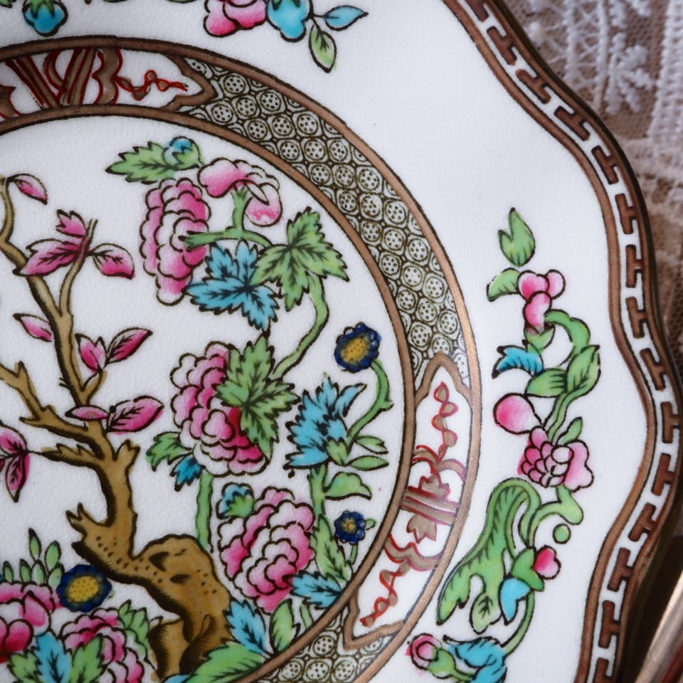 鮮やかな色彩と緻密な絵付けによる繊細なデザインは、食卓に華やかさを添えるだけでなく、インテリアとしても存在感を放ちます。特に、コールポート製のインディアンツリーはその品質の高さとクラフトマンシップで知られ、多くのアンティーク愛好家から高い評価を得ています。