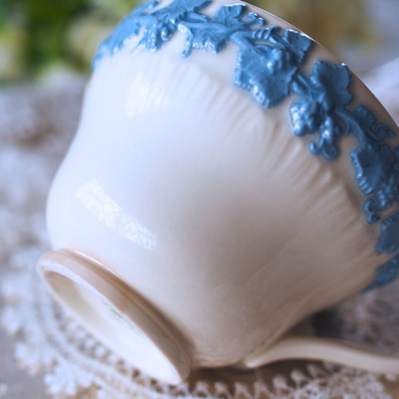 特にホワイト×ブルーの組み合わせは、ウェッジウッドの中でも非常に珍しく、現在ではほとんど見かけない、まさに「激レア」なアイテムです。