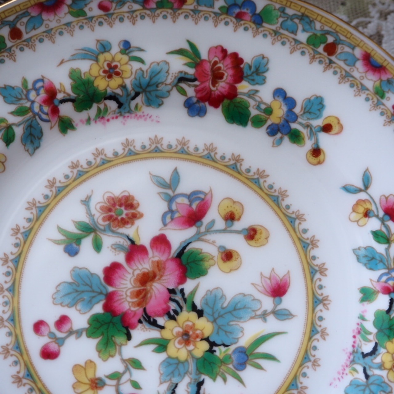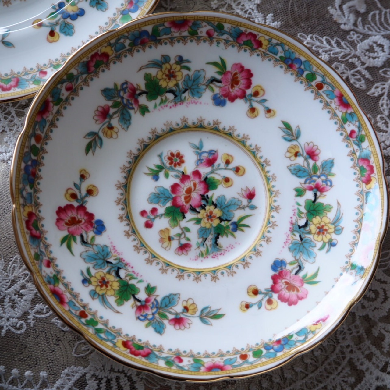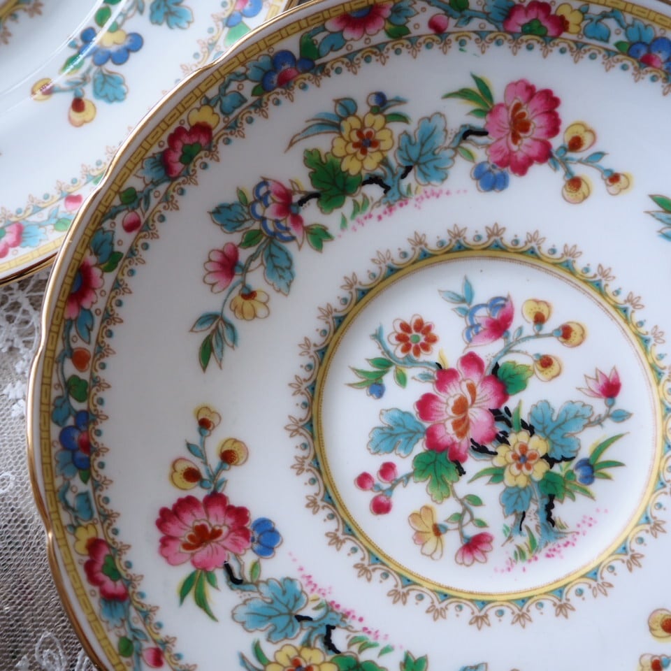 英国の名窯コールポートによる「ミングローズ」は、色とりどりの花々と繊細な金彩が特徴の、長年愛され続けてきた人気シリーズです。