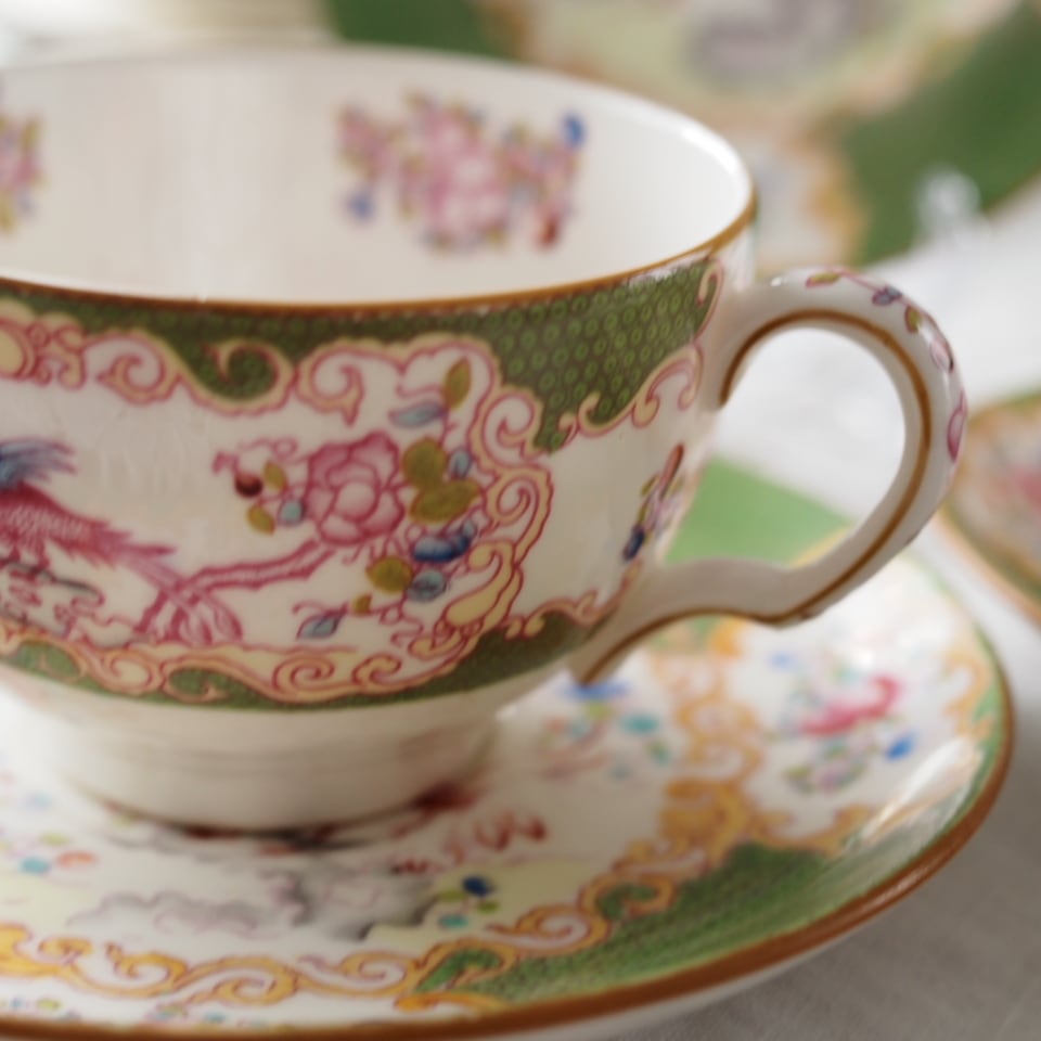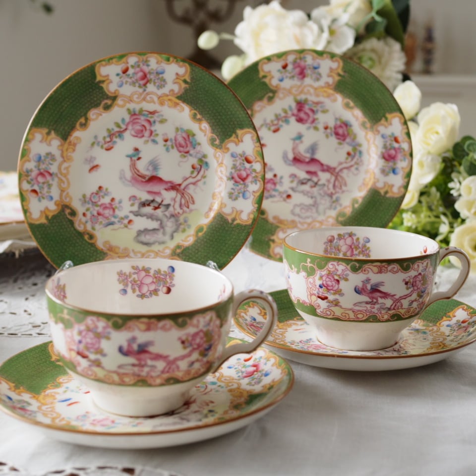 英国ミントン・コカトリスシリーズのカップ&ソーサー2客とプレート2枚のセットです。