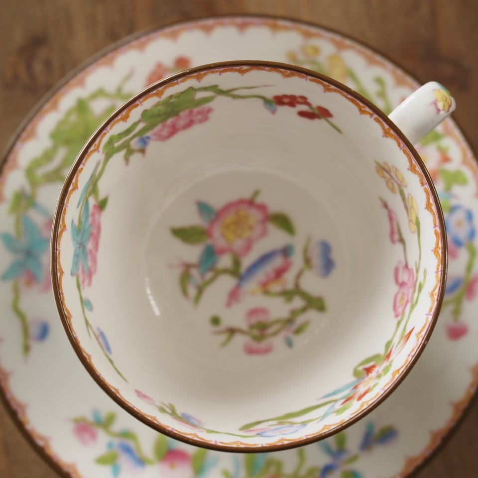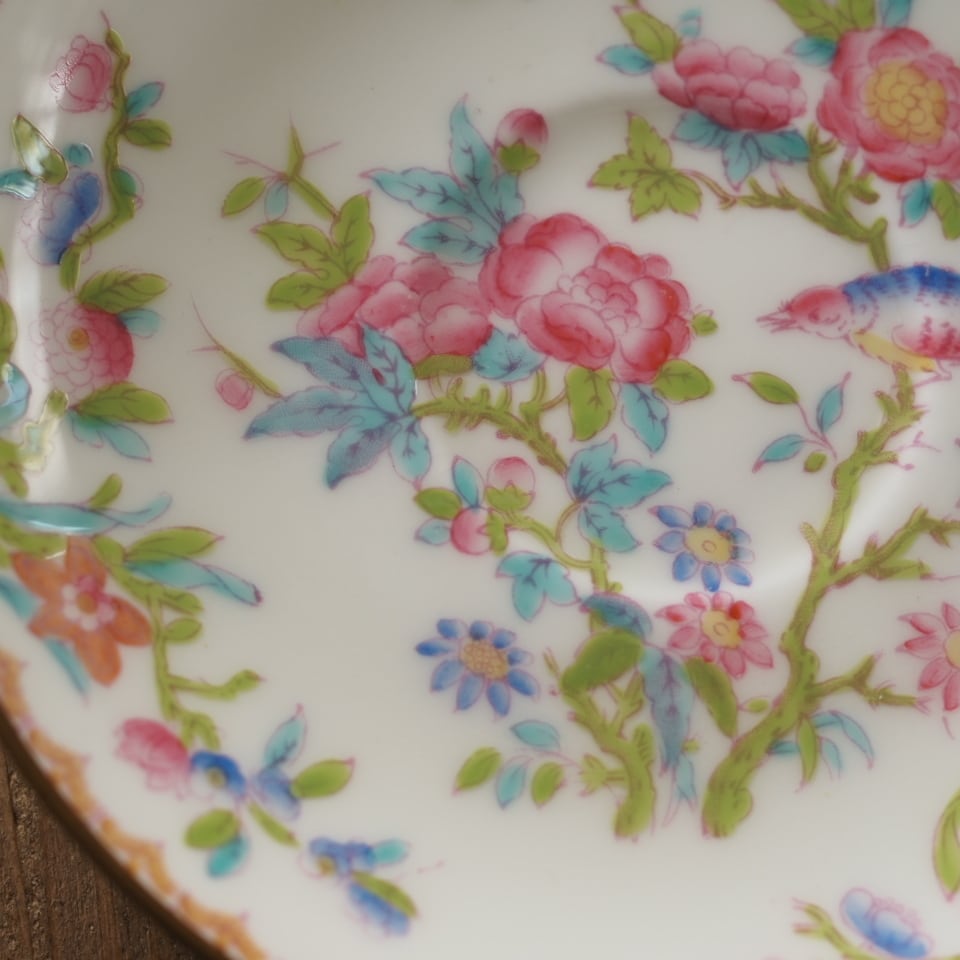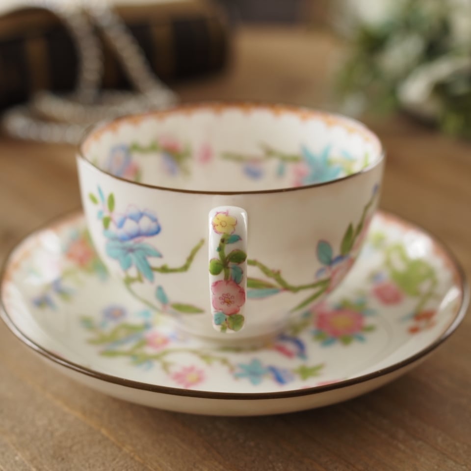 可憐な花々と小鳥が舞う“シノワズリ”の意匠は、当時の英国で「華やぎの象徴」として愛されました。