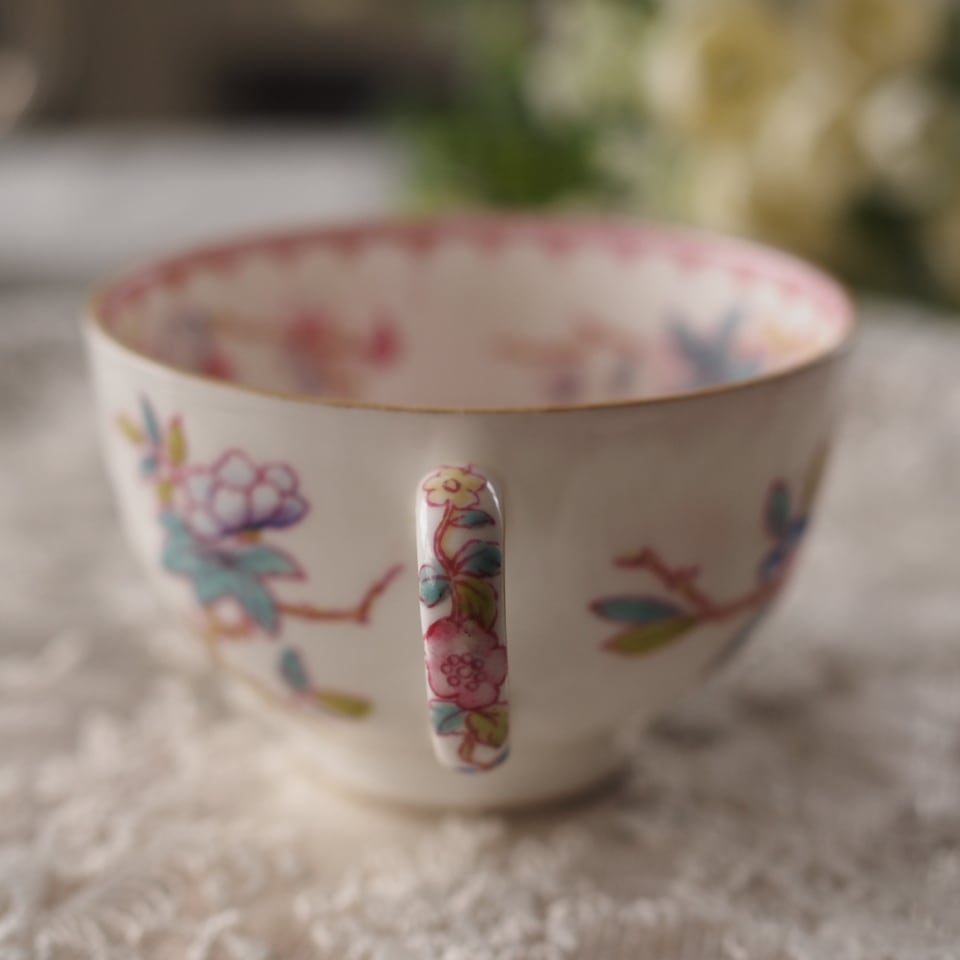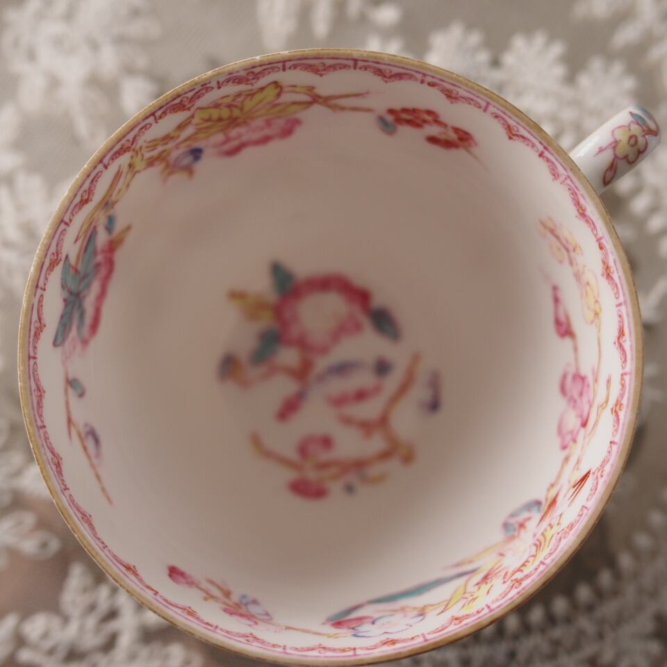可憐な花々と小鳥が舞う“シノワズリ”の意匠は、当時の英国で「華やぎの象徴」として愛されました。