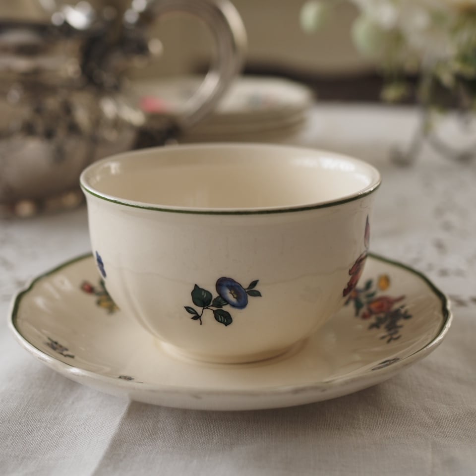 華やかな花々が可憐に描かれた、ビレロイ&ボッホの「アルト・ストラスブール」シリーズのカップ&ソーサー。