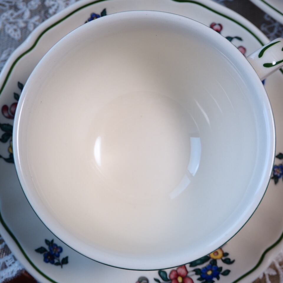 ティーカップの内側はたっぷりとした容量があり、朝のたっぷり紅茶にもおすすめ。