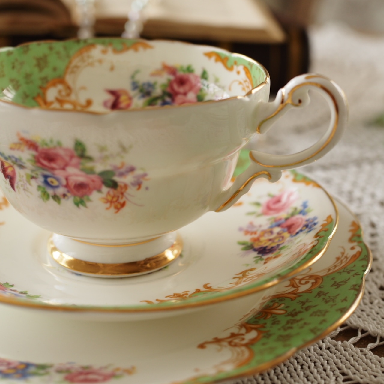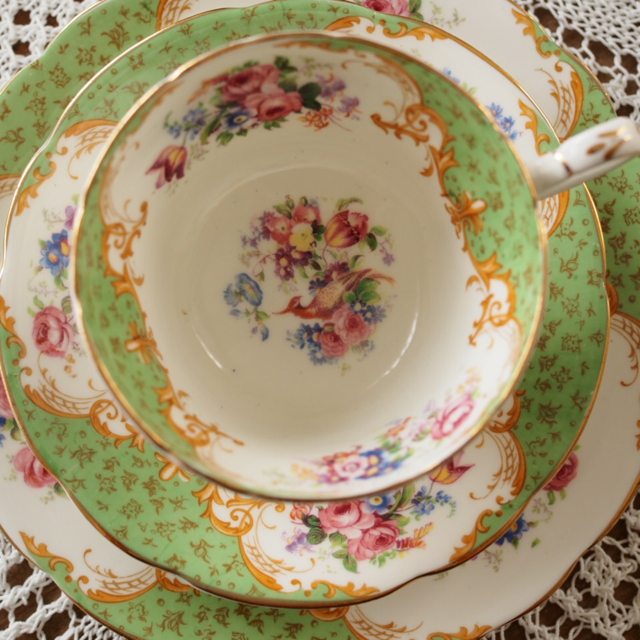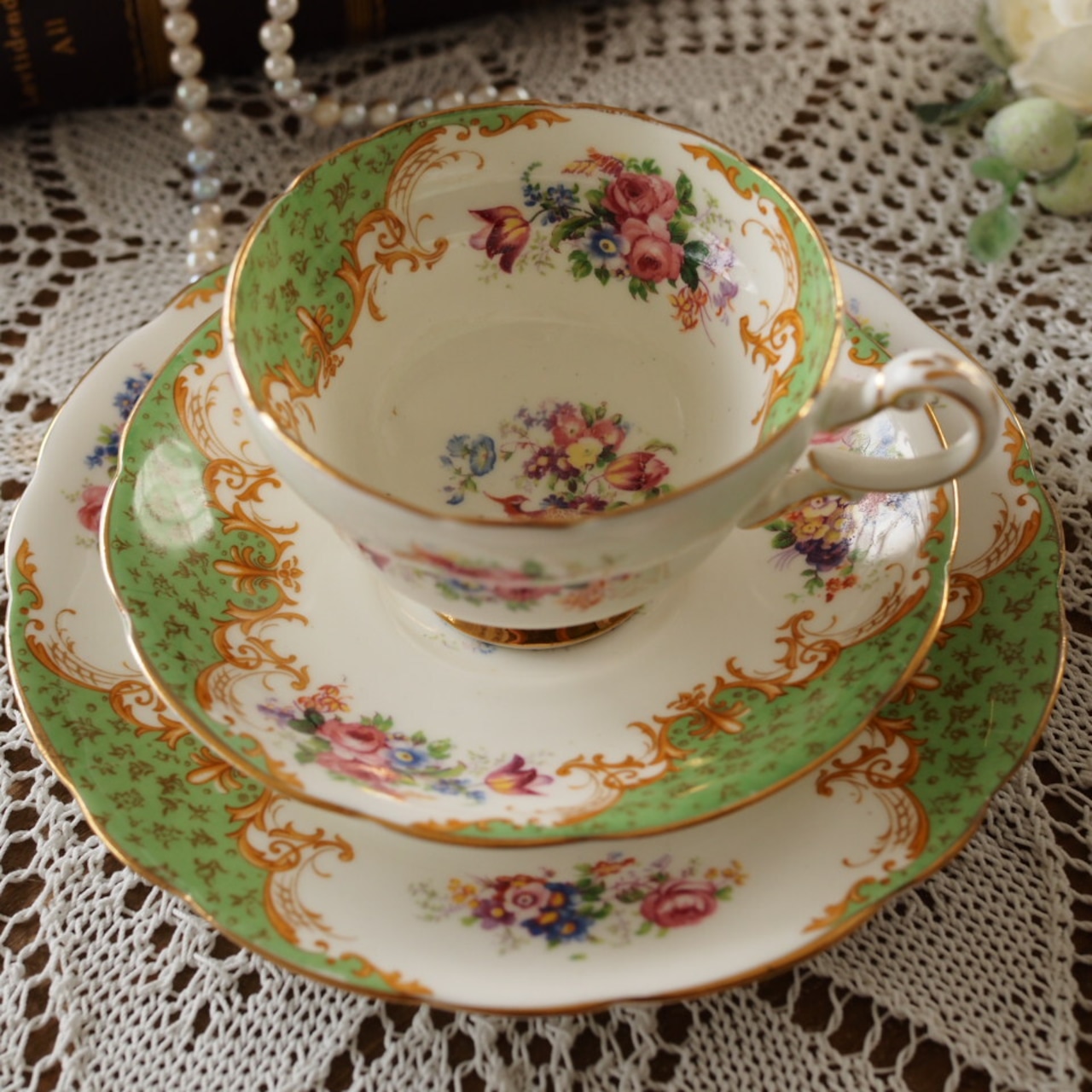 英国アンティーク パラゴン ロッキンガムグリーン トリオ① カップ&ソーサー F9