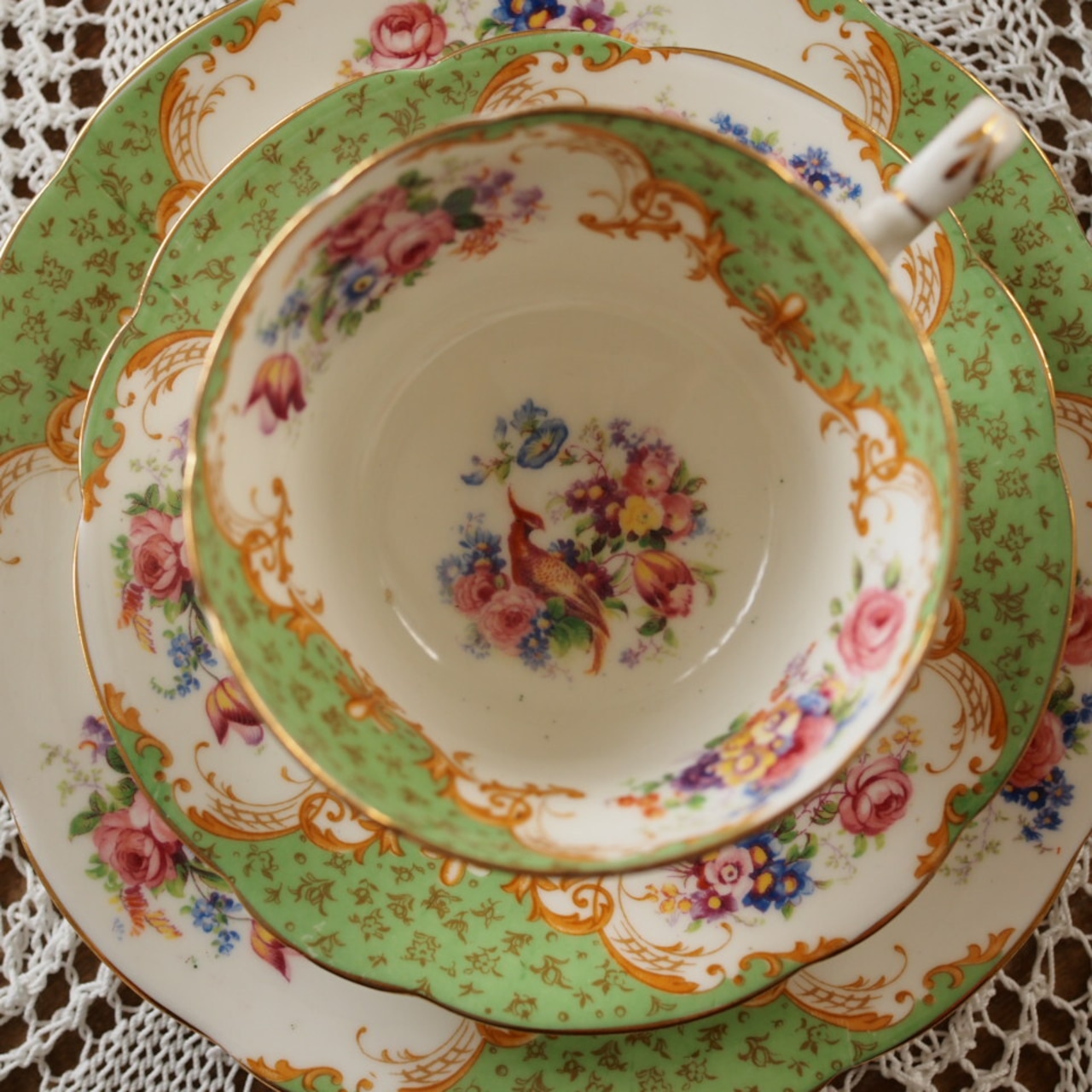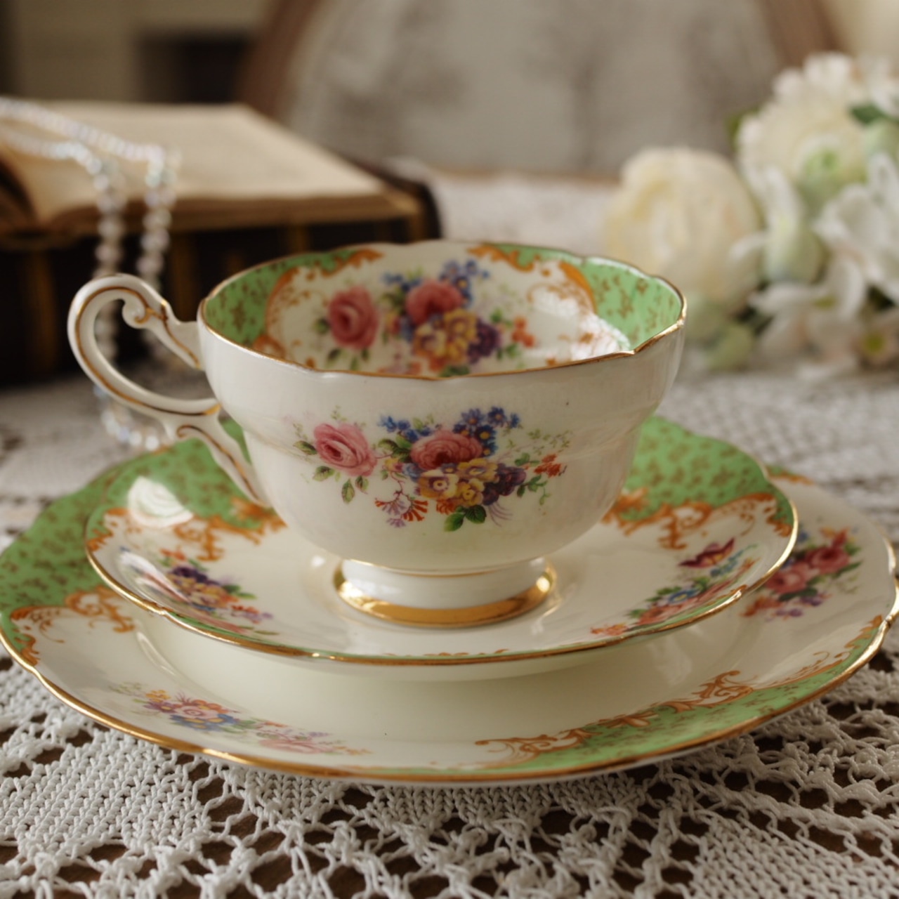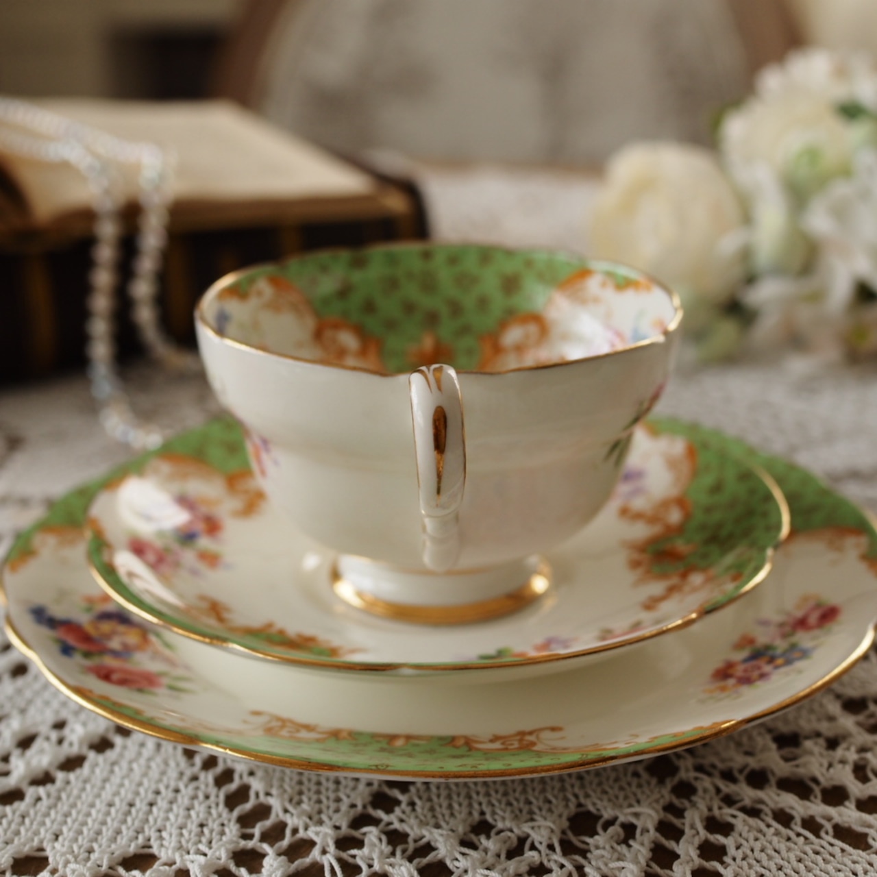 英国アンティーク パラゴン ロッキンガムグリーン トリオ② カップ&ソーサー F9