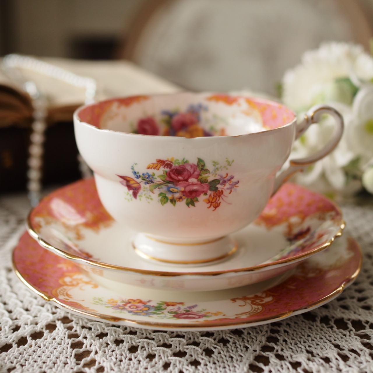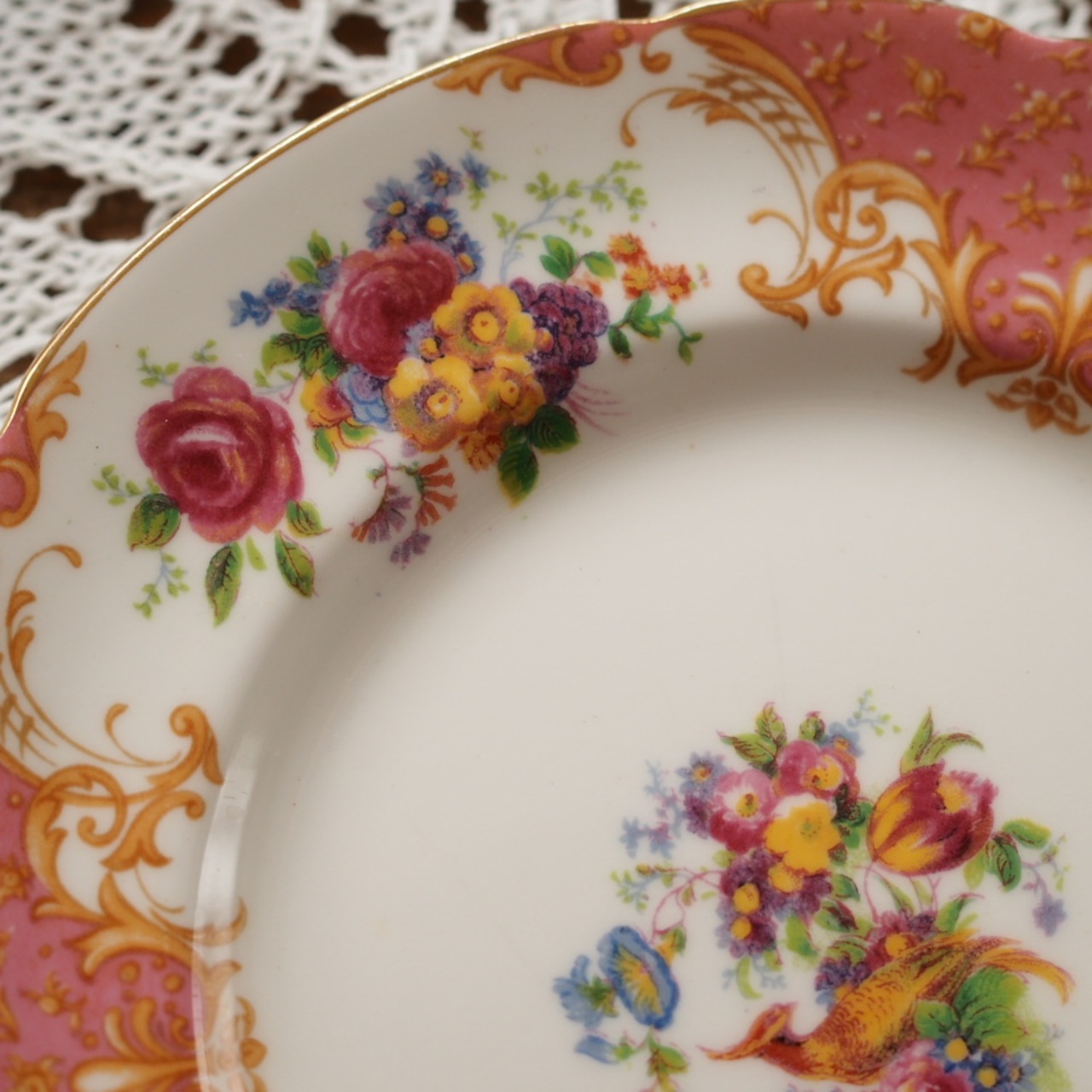 英国アンティーク パラゴン ロッキンガム ピンク トリオ① カップ&ソーサー F1