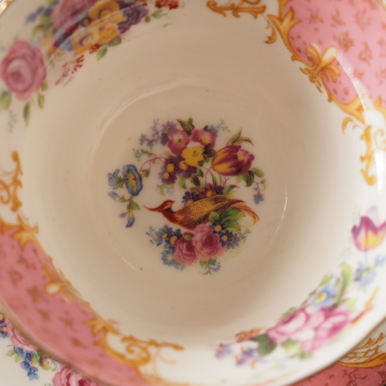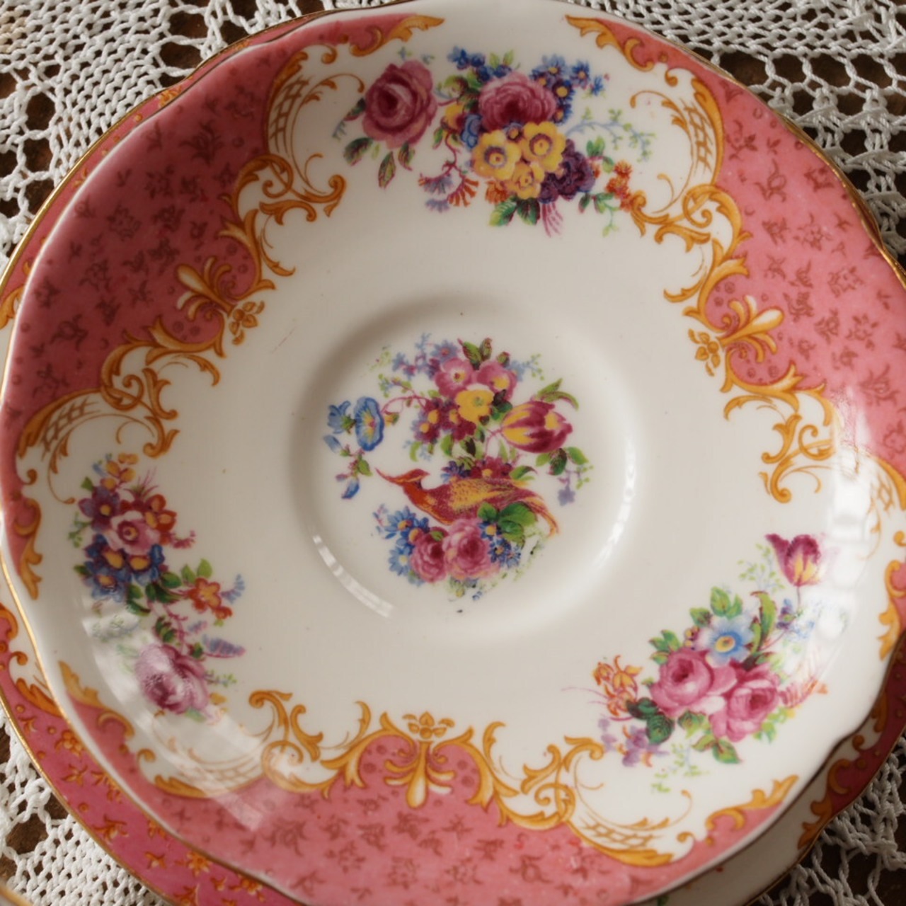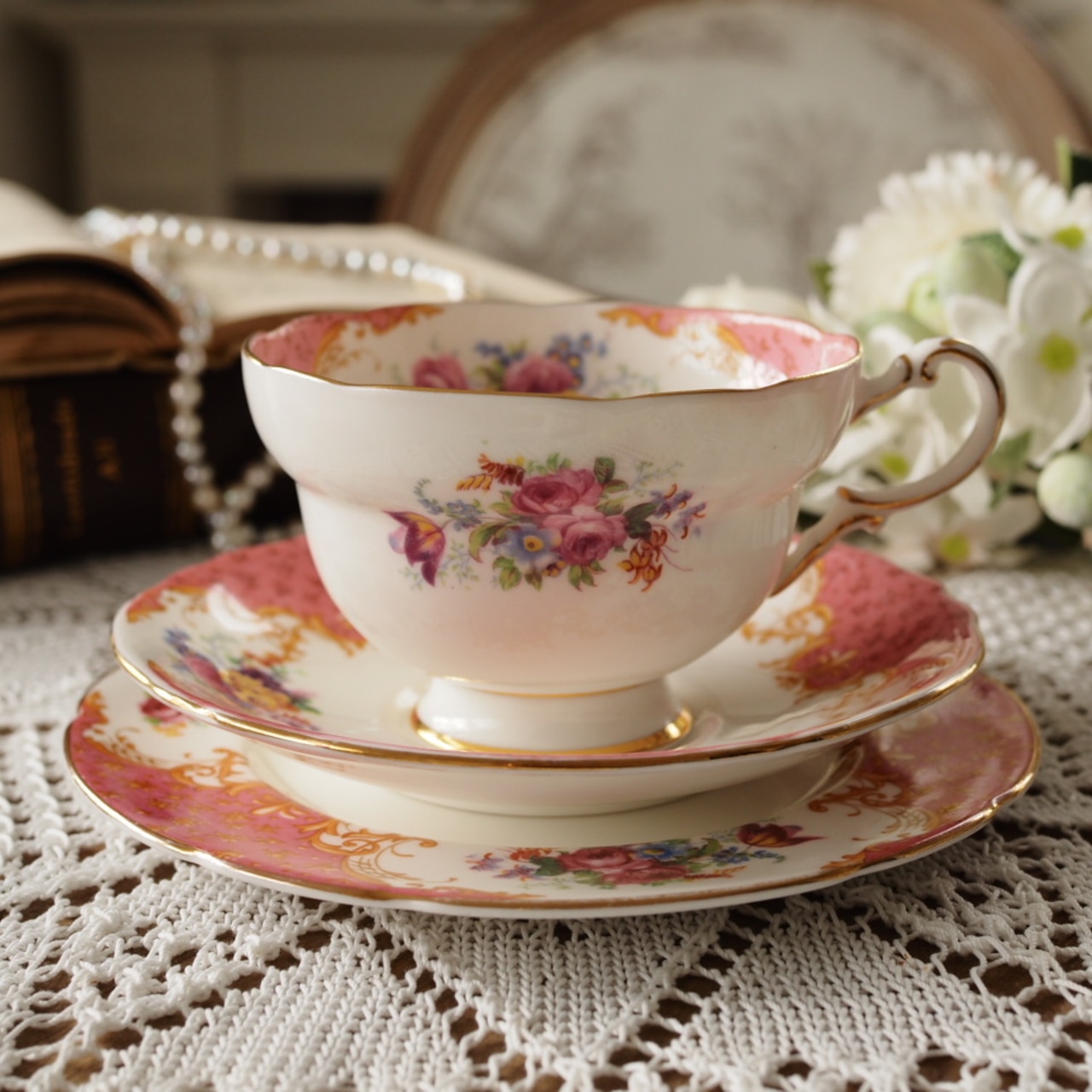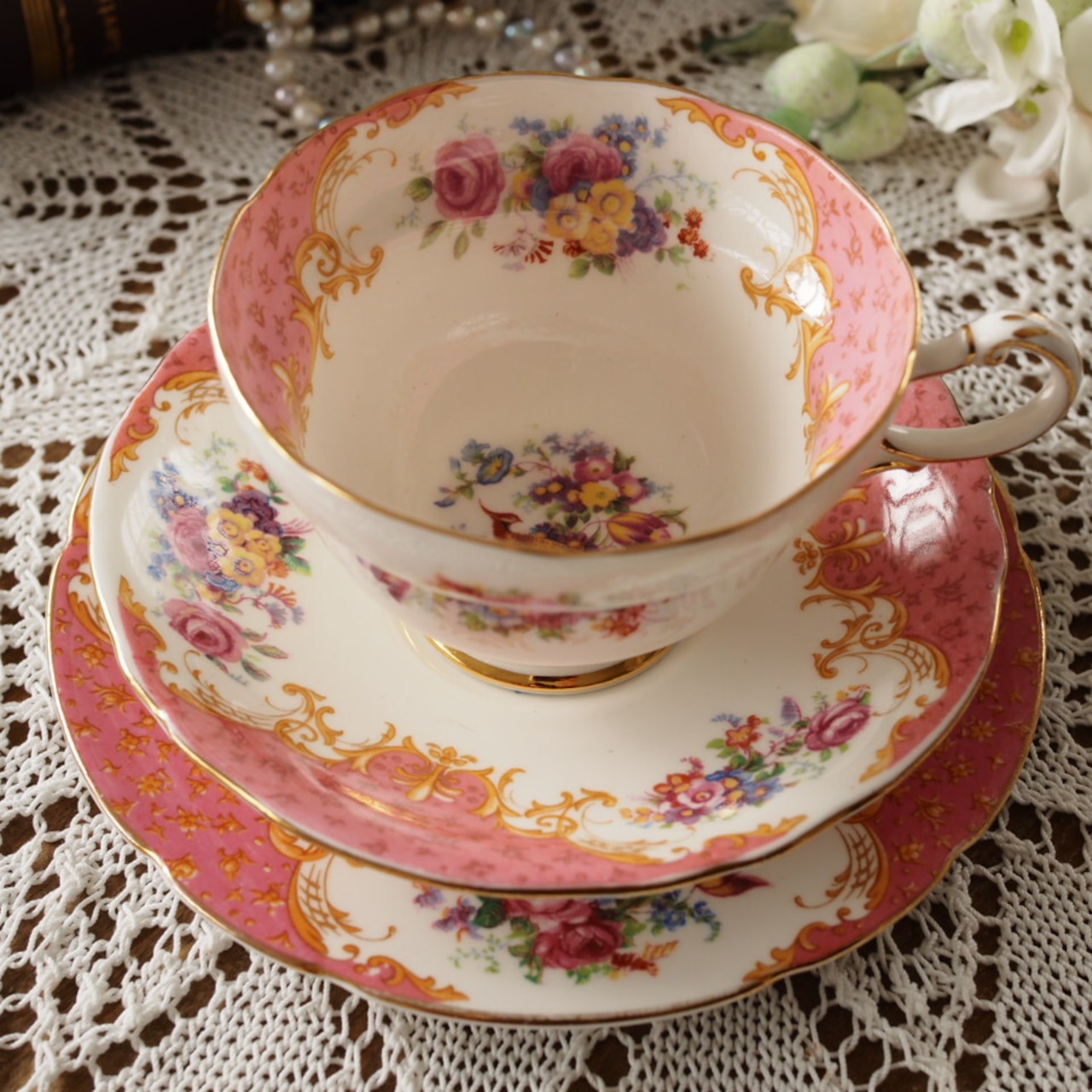 英国アンティーク パラゴン ロッキンガム ピンク トリオ③ カップ&ソーサー F1