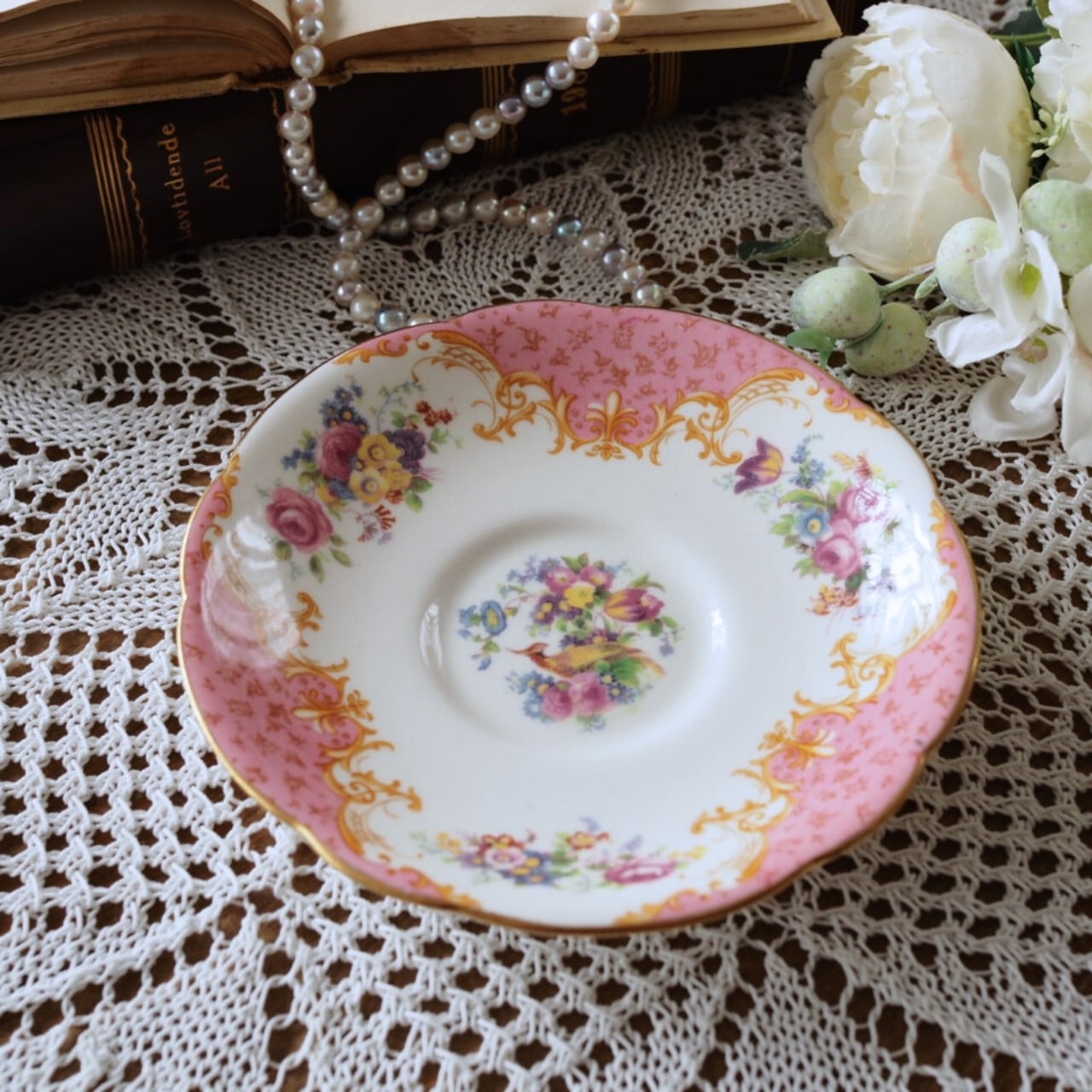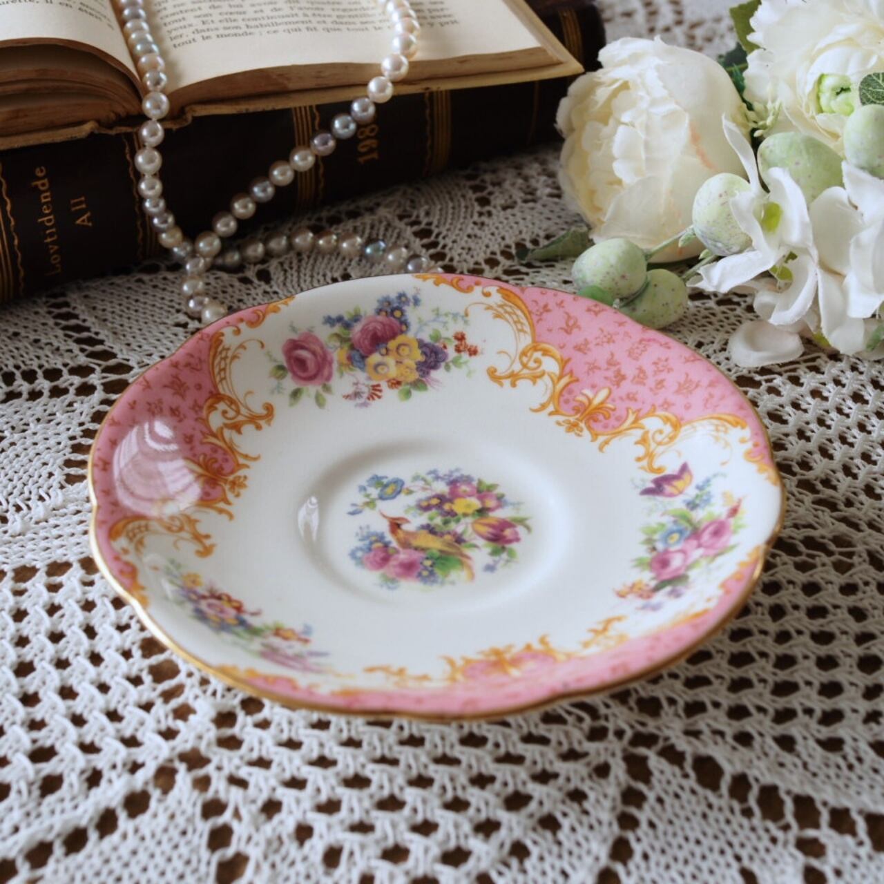 英国アンティーク パラゴン ロッキンガム ピンク ソーサー1枚A F1