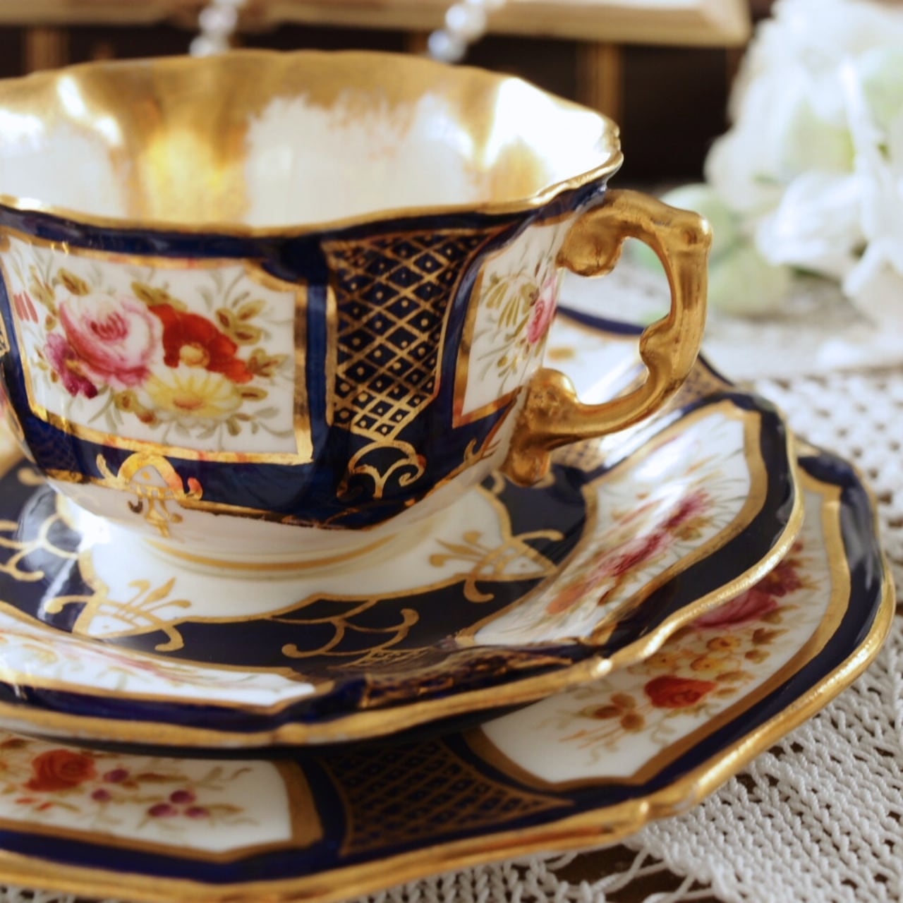 素敵 英国 ハマースレイ コバルト&ゴールド ローズ トリオ② カップ&ソーサー