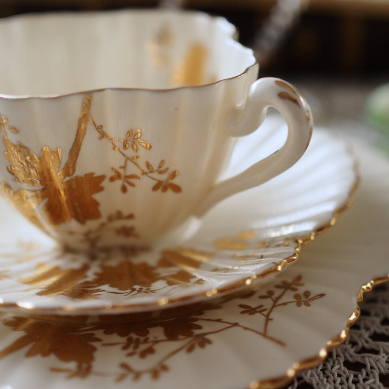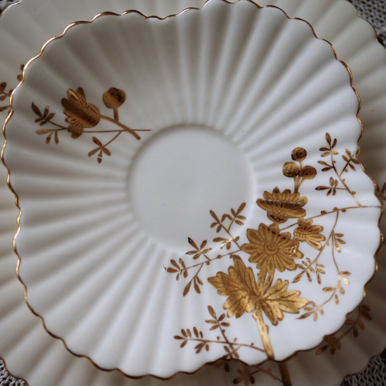 こちらの美しいワイルマンのトリオは、ヴィクトリア朝時代に製作された貴重な一品です。1887年から1902年にかけて製作されたもので、アレクサンドラシェイプに優雅なゴールドアスター柄が施されています。