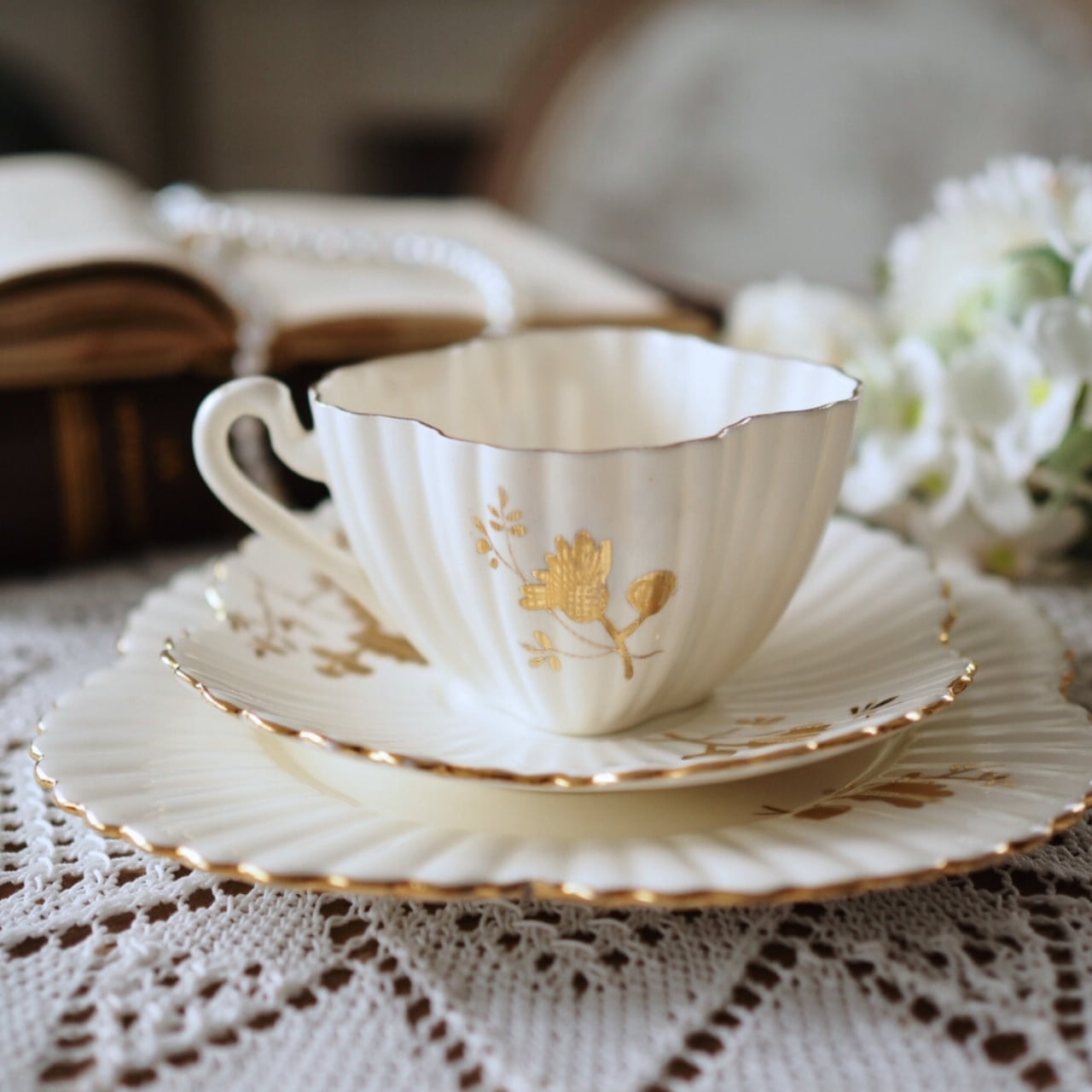 素敵 英国ワイルマン シェリー ゴールドアスター トリオ カップ&ソーサー