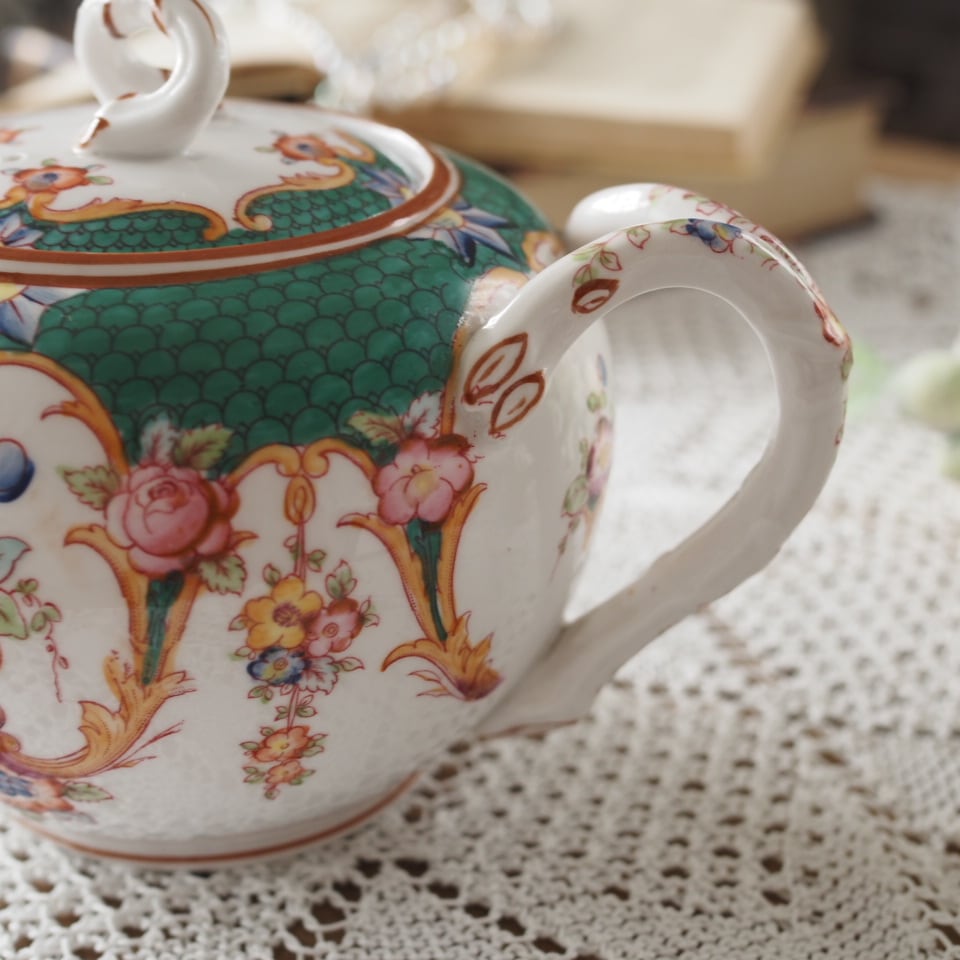 サルグミンヌがMINTONの絵柄を用いて生まれたもので、オリエンタルな雰囲気が漂うとても美しいポットです。