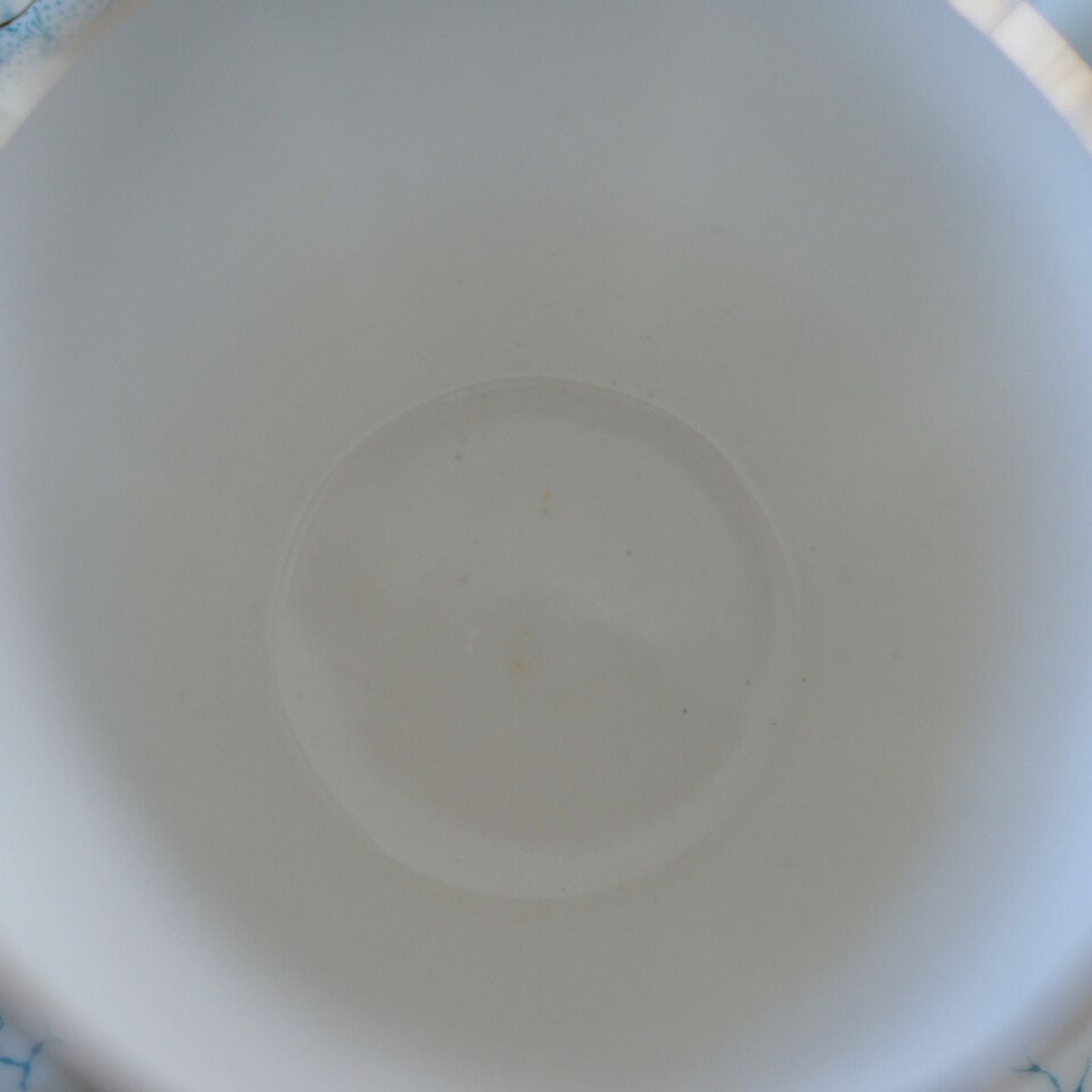 明るめのブルーで縁取られたデイジー模様と金彩の縁取りが非常に美しく、白磁の地肌に映えて洗練された雰囲気を醸し出しています。