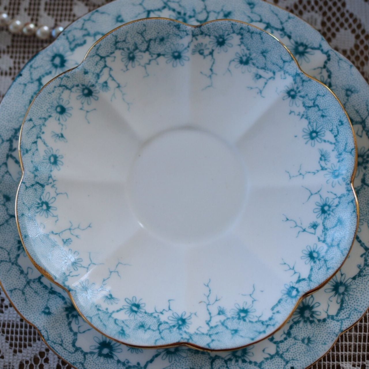英国シェリー リリーシェイプ 淡いブルーのデイジー柄トリオ