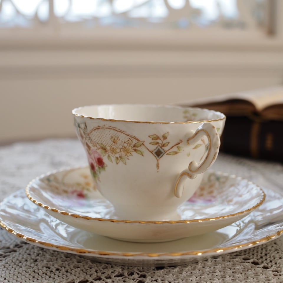 ~英国サミュエルラドフォード Cassina トリオ アンティーク薔薇柄ティーセット~