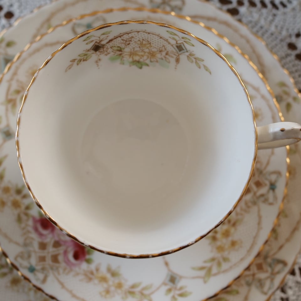 英国アンティークを代表する名窯、サミュエルラドフォードの「カッシーナ」シリーズのカップ&ソーサーとプレートがセットになったトリオです。