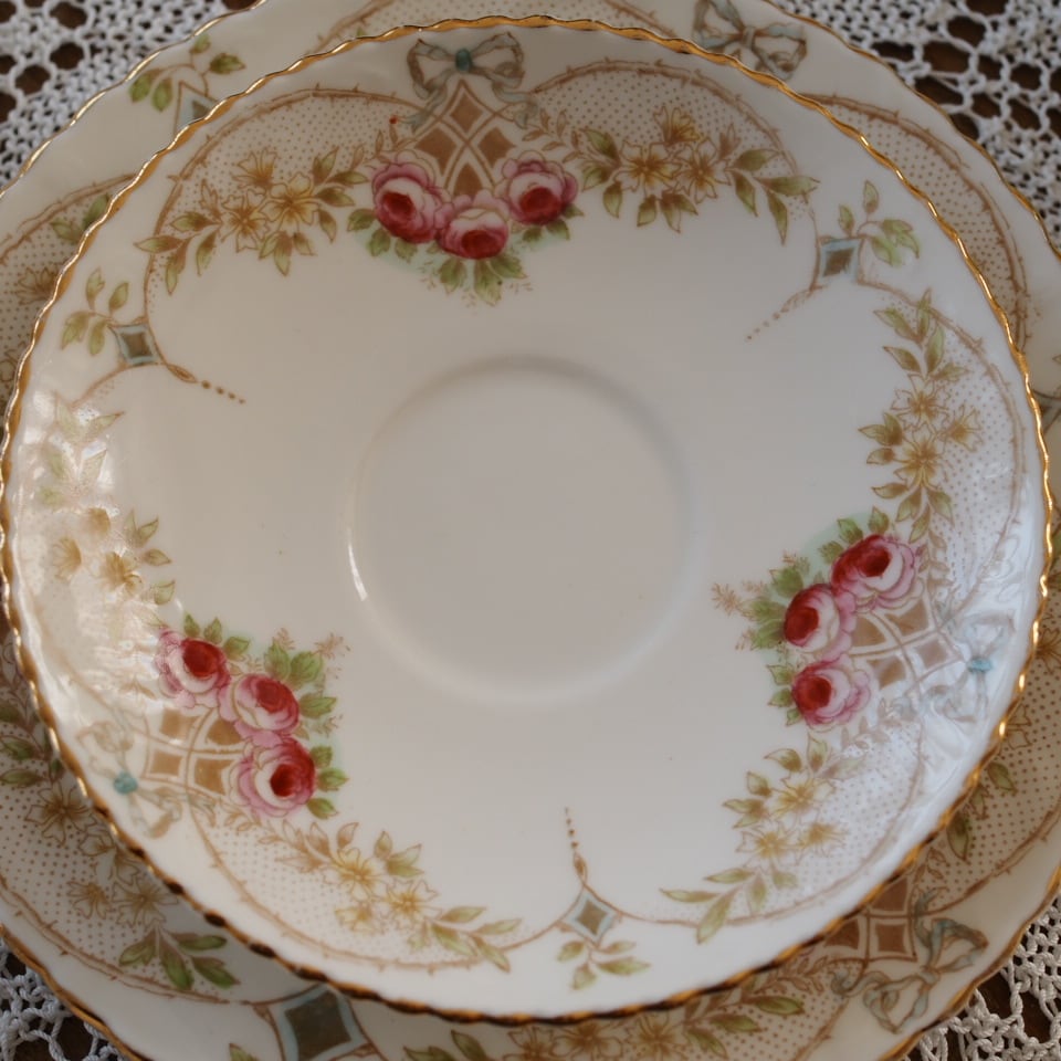 英国サミュエルラドフォードCassina トリオA ティーカップ&ソーサー&プレート アンティーク薔薇柄ティーセット F2
