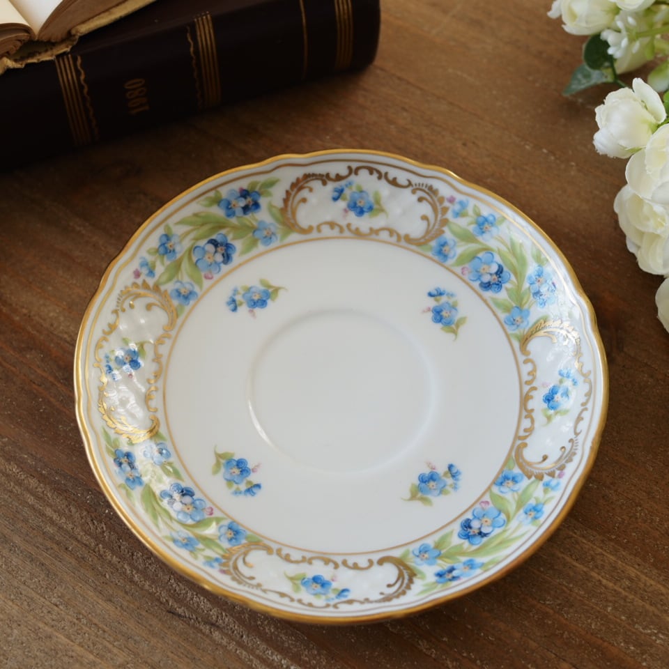 鮮やかなブルーの勿忘草が丁寧に描かれたソーサーは、上品で落ち着いた雰囲気を演出してくれます。勿忘草の愛らしい花柄は、時代を超えて愛され続けるクラシックな魅力を持ちながらも、どこか新鮮さを感じさせます。