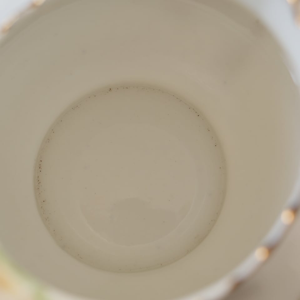 微細な金彩の擦れや黒点、色飛びが見られますが、割れ、ヒビや欠けはなく、大変良好なコンディションです。
