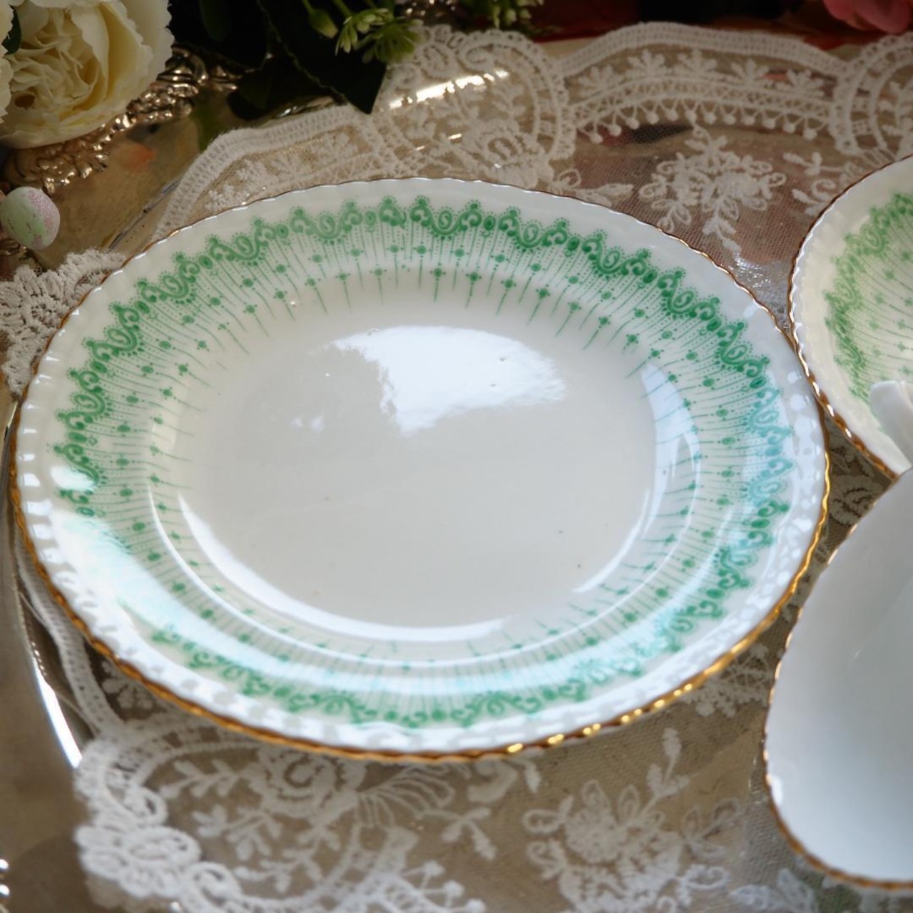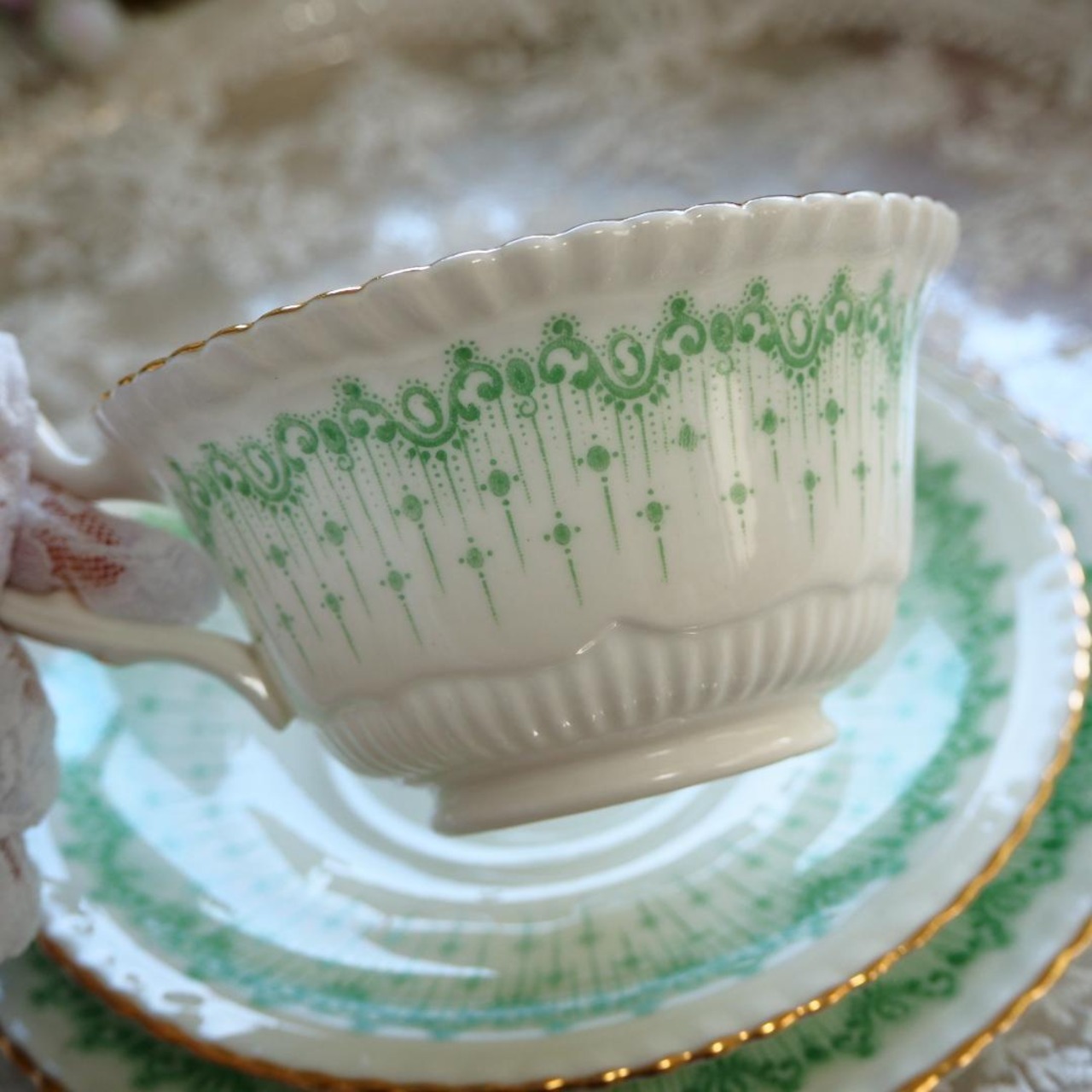 淡いグリーンの絵柄がふんわりとしたした雰囲気のとても素敵なお品です。