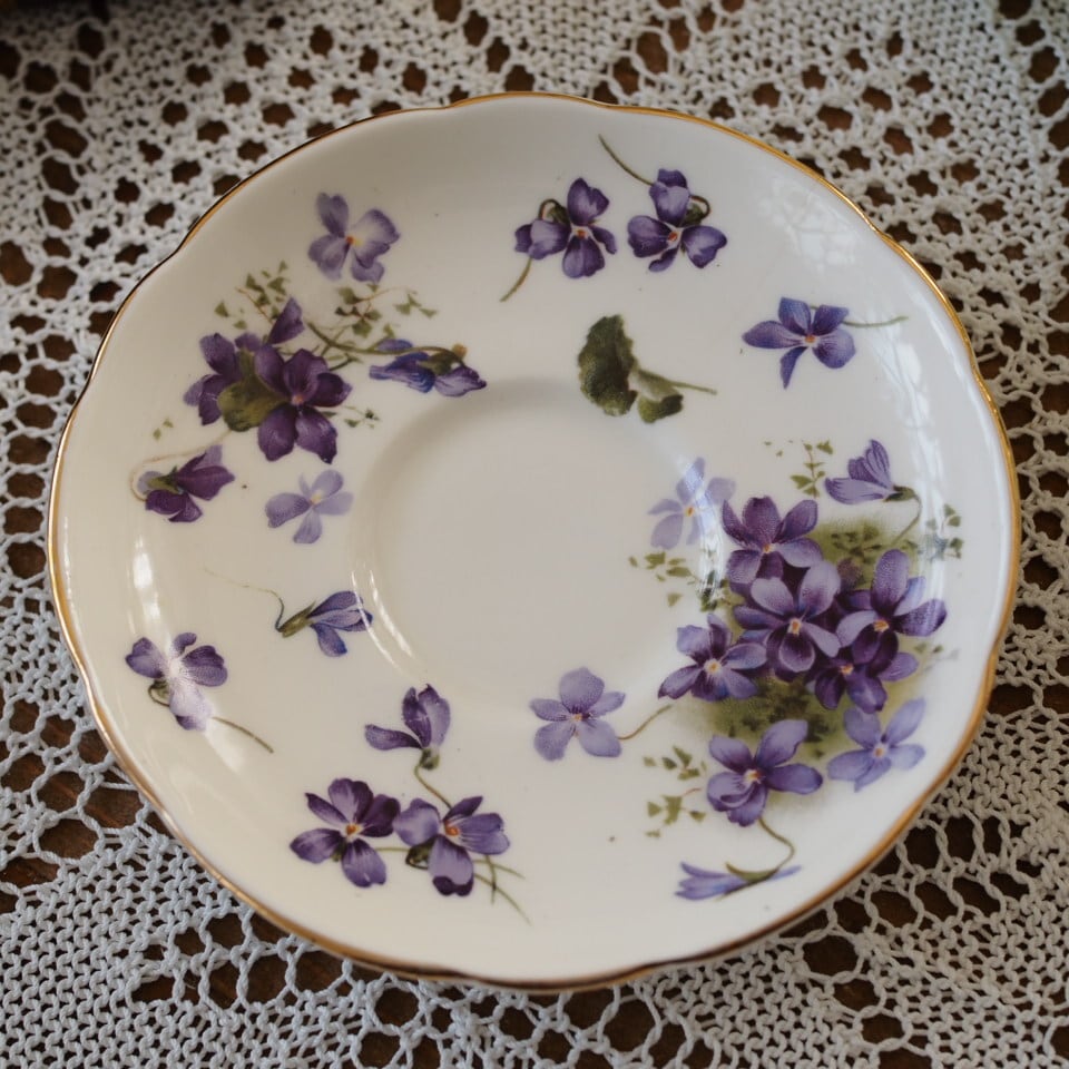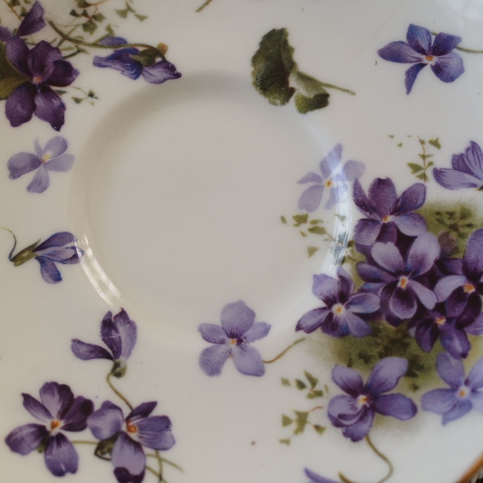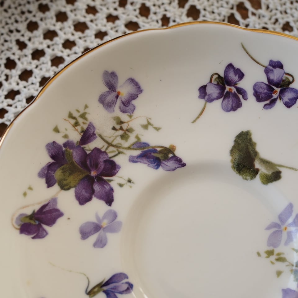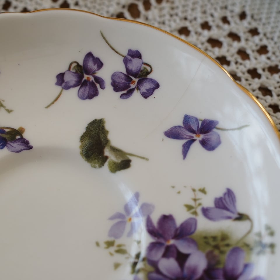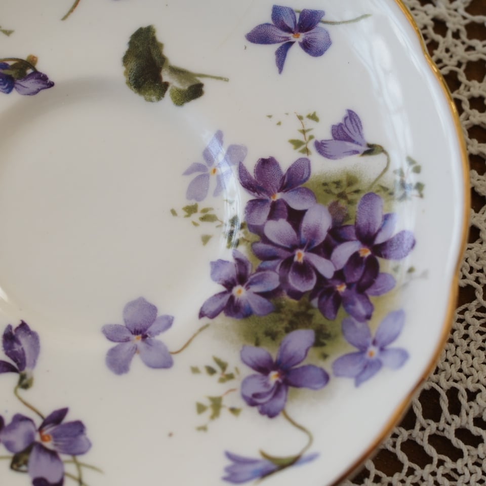 ハマースレイのお品はどれも素敵ですが、中でもこちらのヴィクトリアンバイオレットは、大きく描かれたスミレがとても可憐で品があり、大変人気がございます。