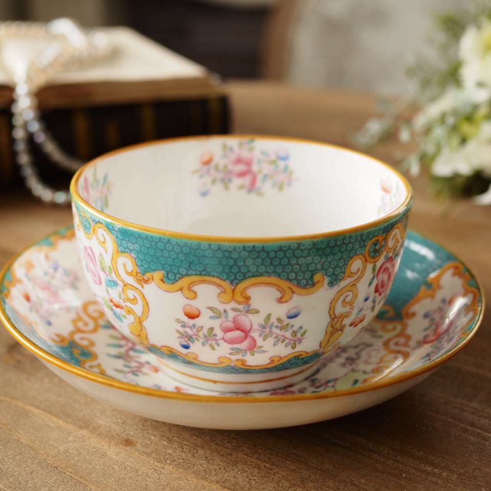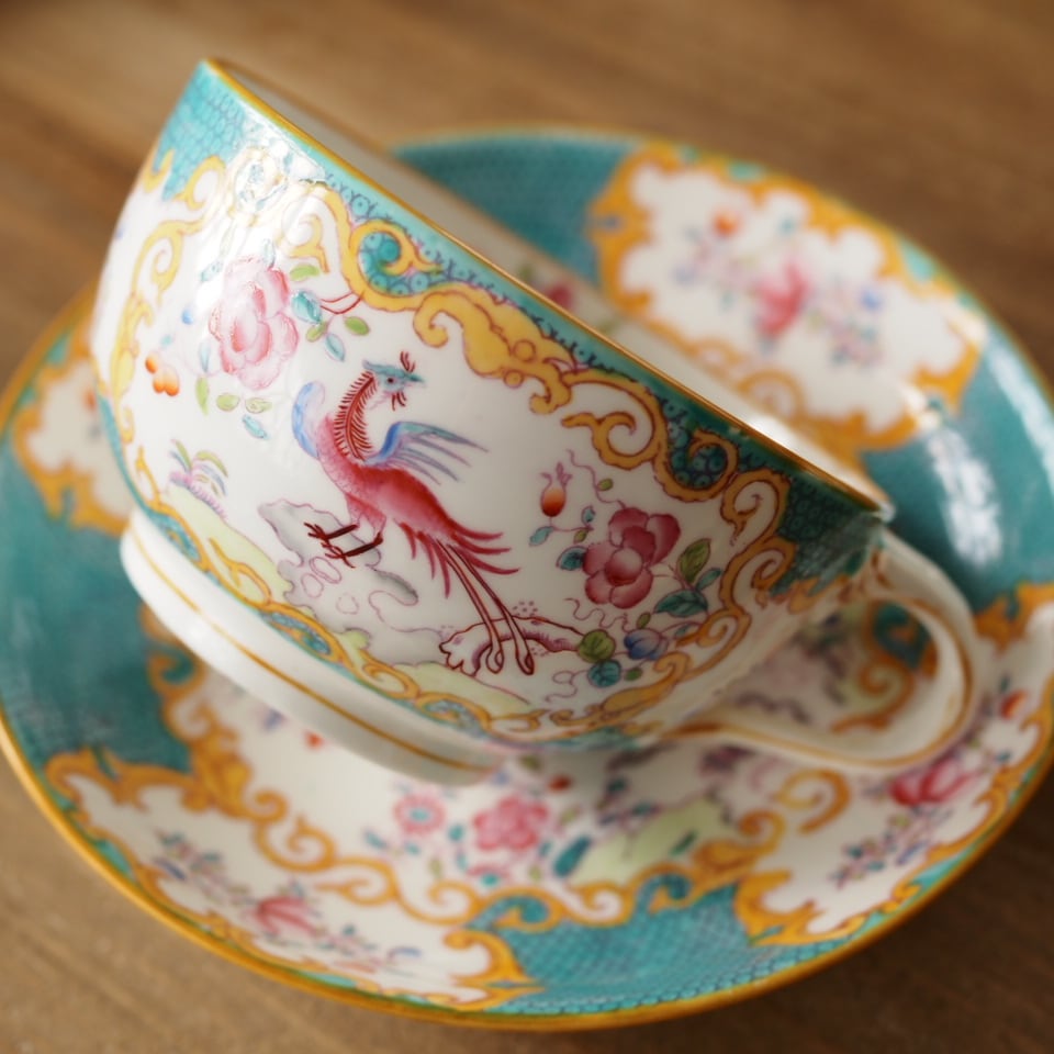 希少なターコイズ色の英国ミントン「コカトリス」のカップ&ソーサーをご紹介いたします。