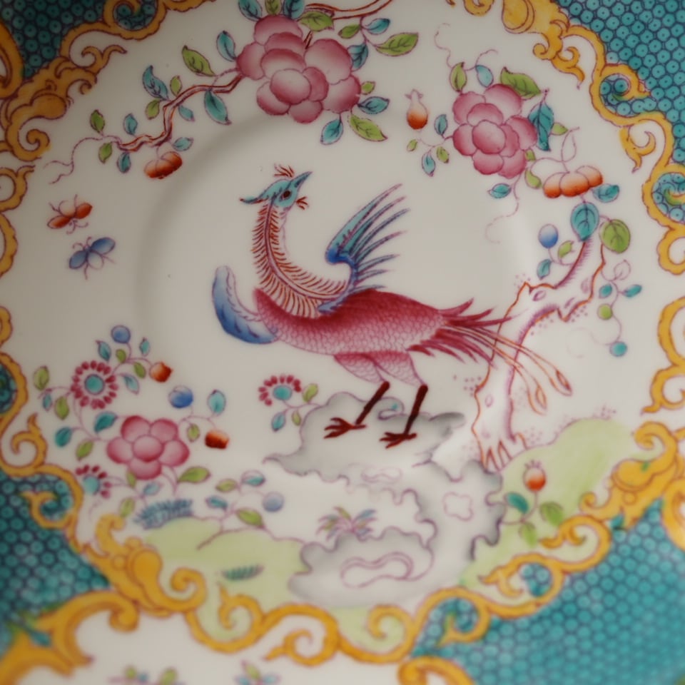美しいターコイズカラーはコカトリスパターンの中でも非常に珍しいカラーで、デザインと色の調和が見事に融合した逸品です。オリエンタルな雰囲気が漂いとても美しいです!