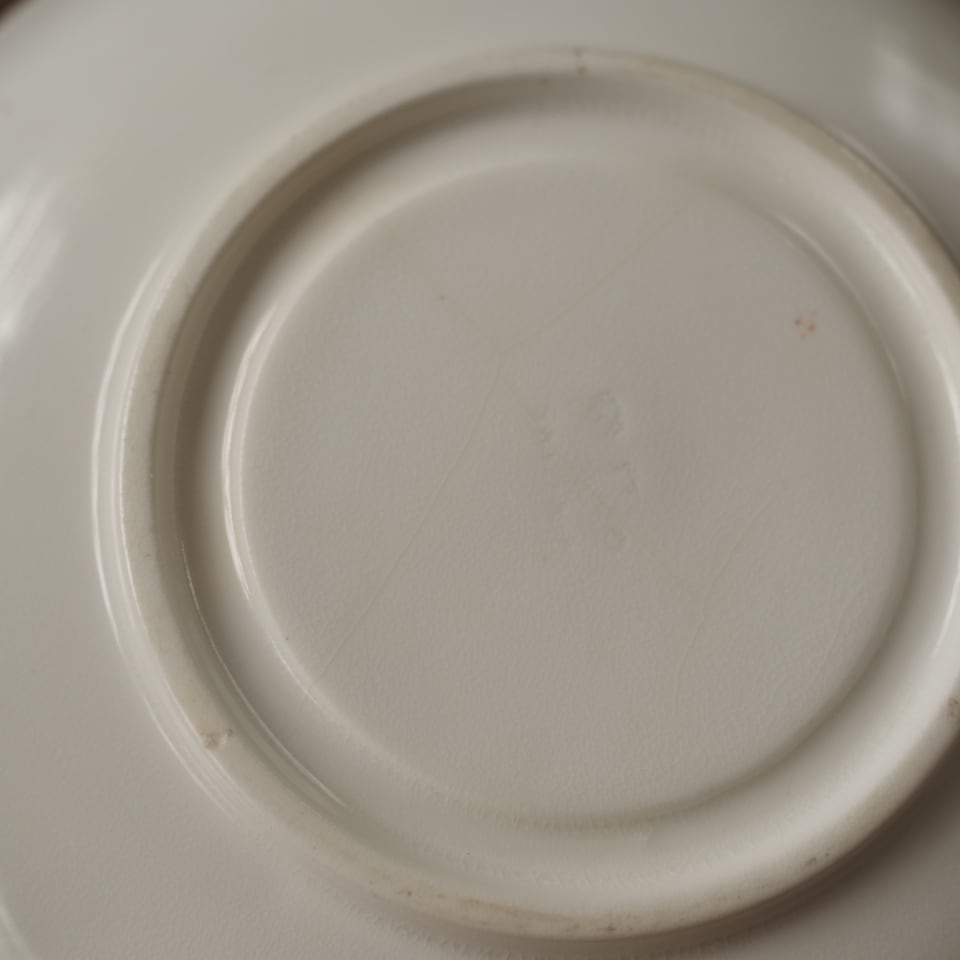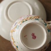 カップに絵柄の剝れ、ソーサーにヘアラインが見られます。