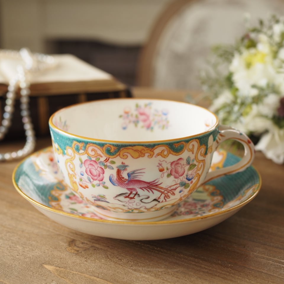 英国ミントン コカトリス・ターコイズカラー ブレックファストカップ&ソーサー
