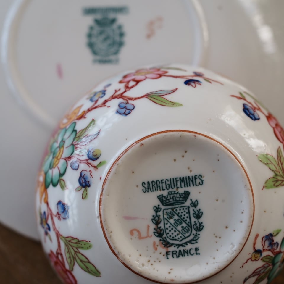 フランスサルグミンヌ窯製・イギリスMintonパターン カップ&ソーサー
