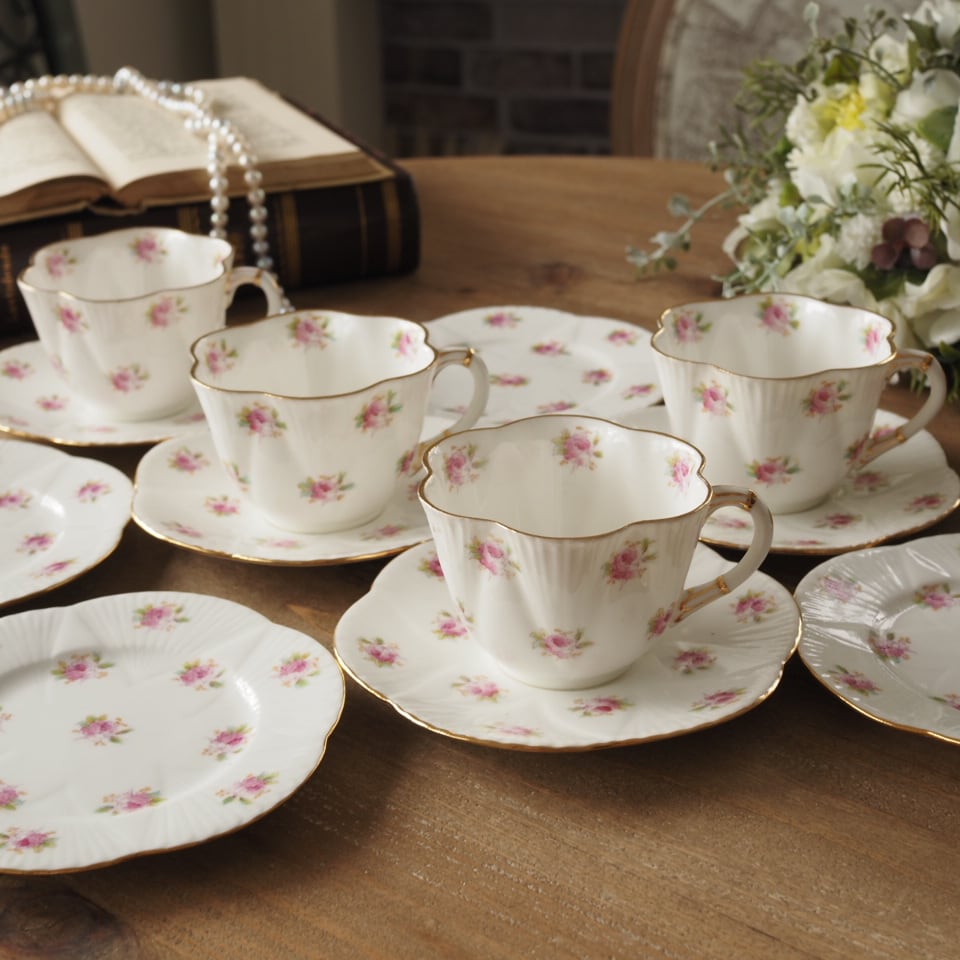 【可愛い】英国シェリーWileman 小さめサイズの可憐なアンティークトリオ4客