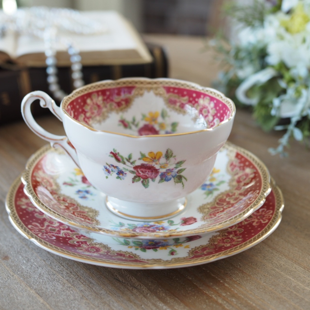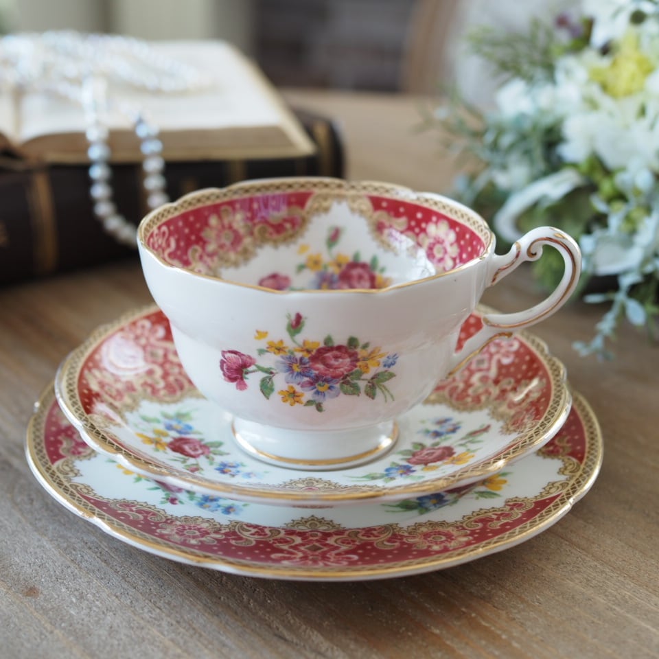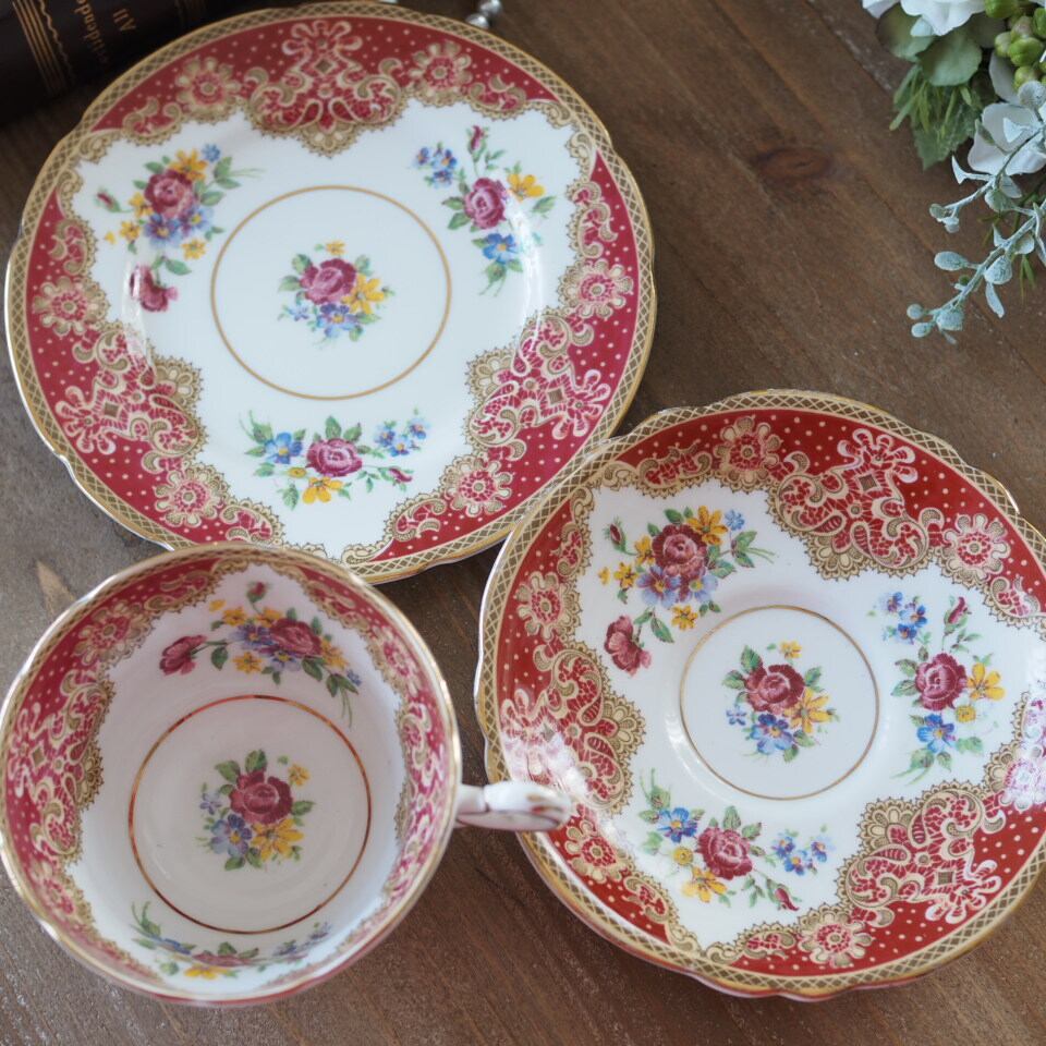 パラゴンparagon ホニトンhoniton レッド ティーカップトリオ