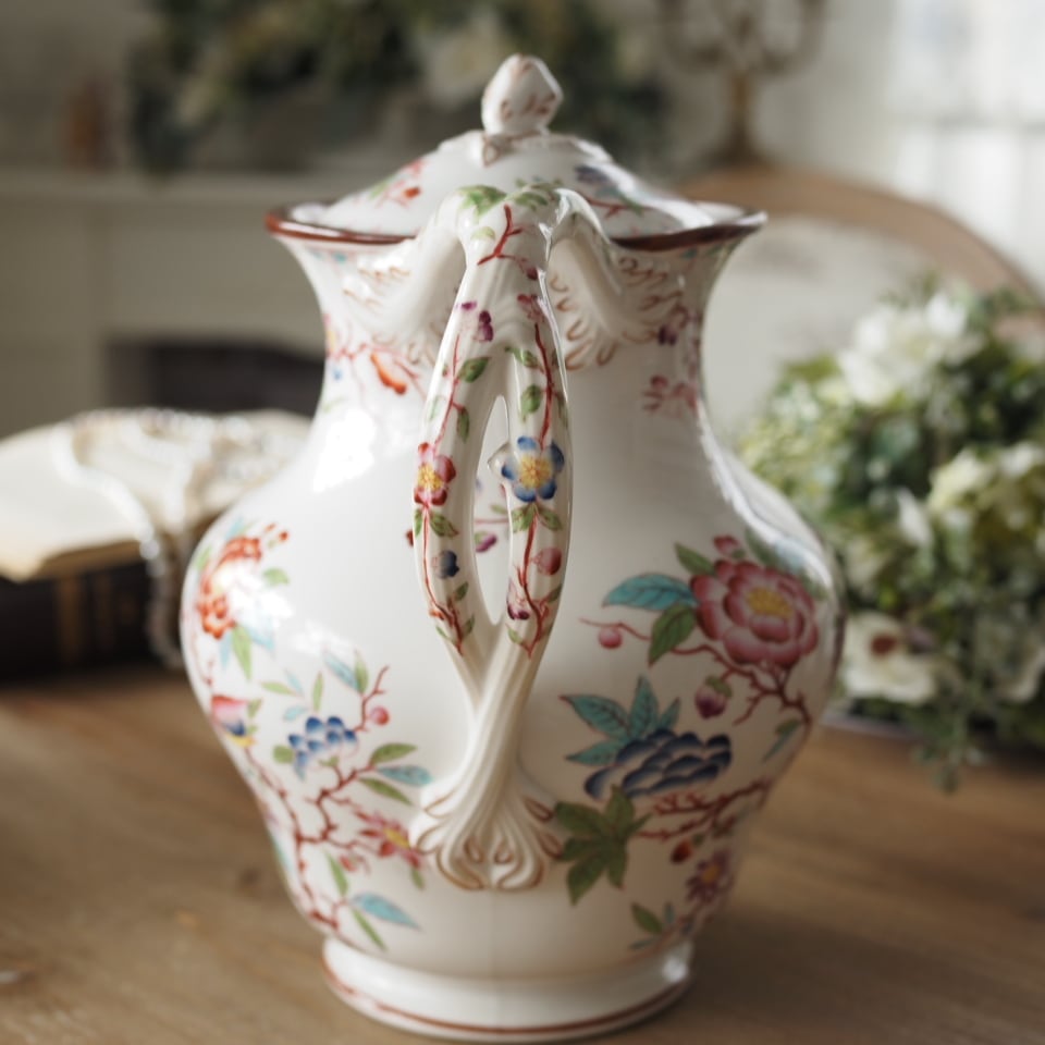 サルグミンヌがMINTONの絵柄を用いて生まれたもので、オリエンタルな雰囲気が漂うとても美しいポットです。