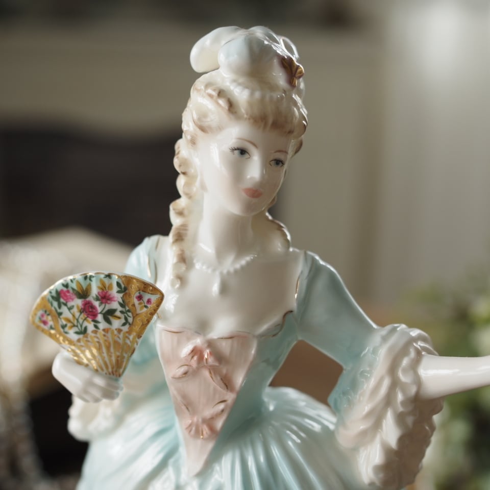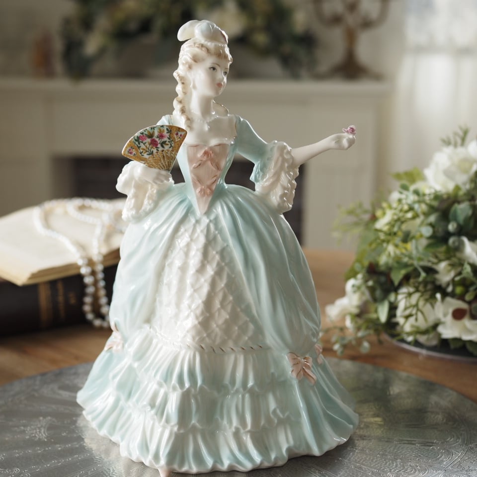 18世紀の宮廷ファッションをそのまま写し取ったような、とても華やかで存在感のあるフィギュリンです。