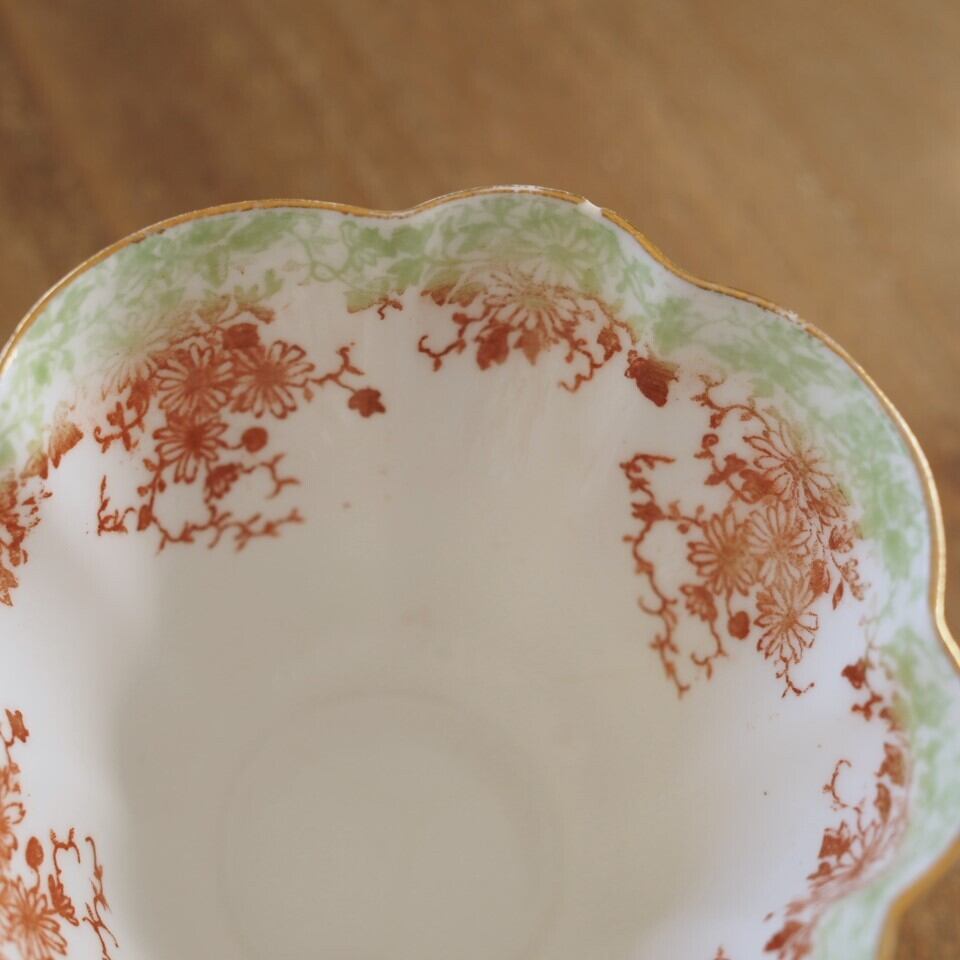 経年による金彩の擦れ、製造時の色飛び、小さなキズなどは100年前のフォーリー作品の特徴としてご理解ください。