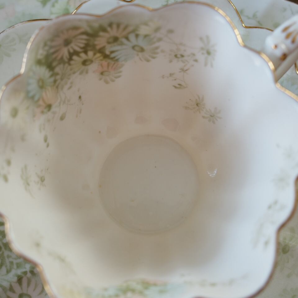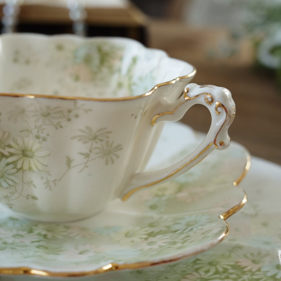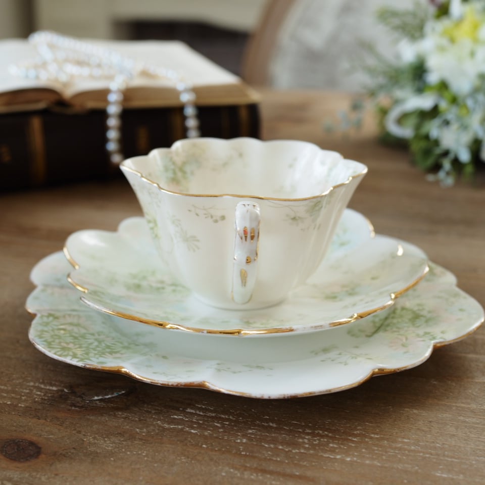 金彩のリムが光を受けると、100年以上前の静かな午後の気配が