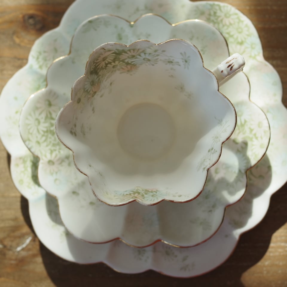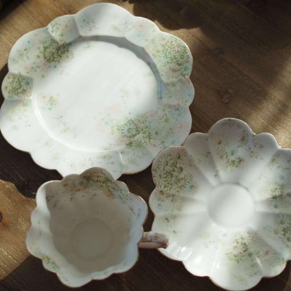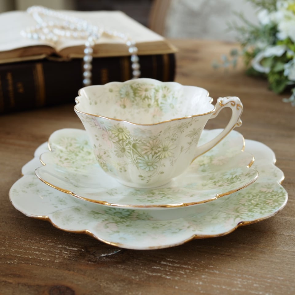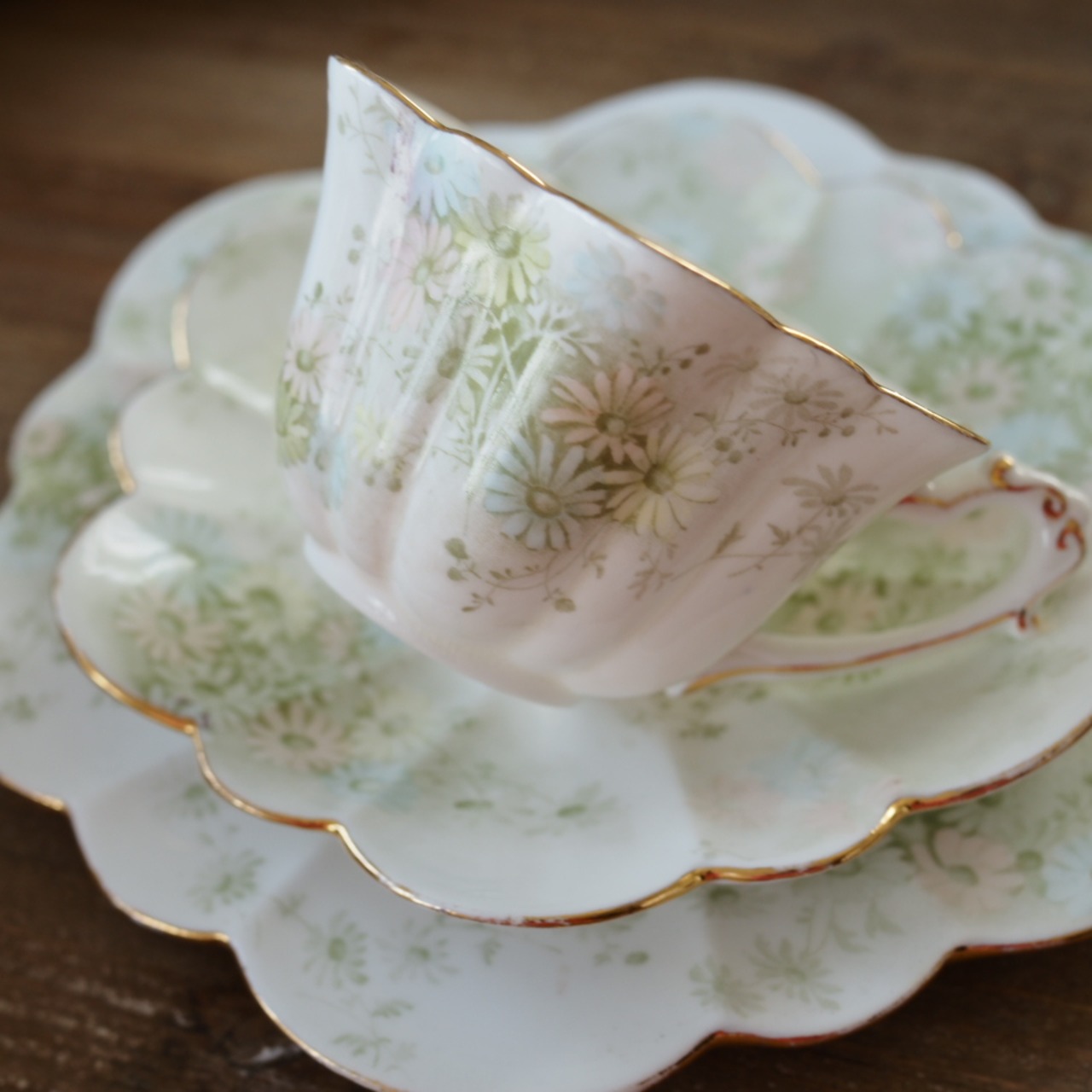 金彩のリムが光を受けると、100年以上前の静かな午後の気配が