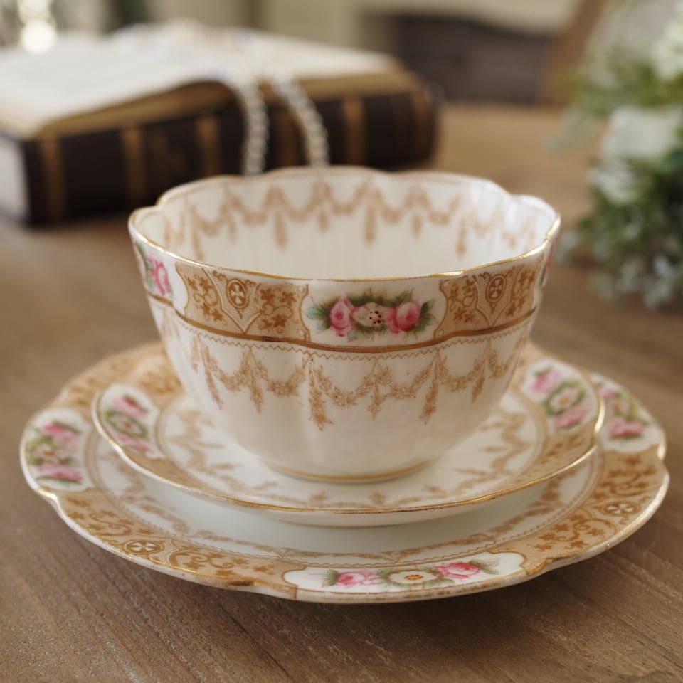 英国ウィリアムロウ ガーランド×ピンクローズ シュガーボウル&プレート おまけソーサー付き F5