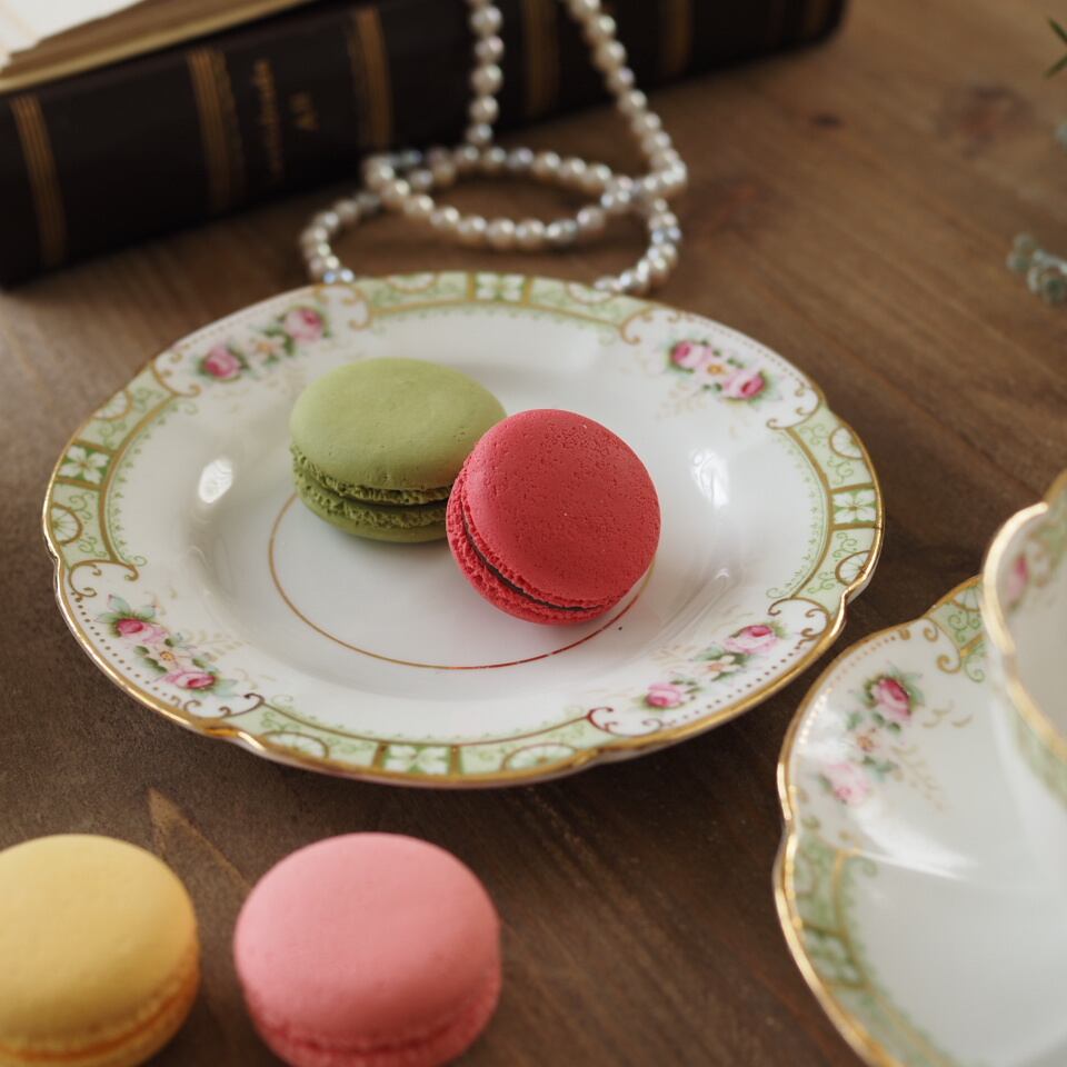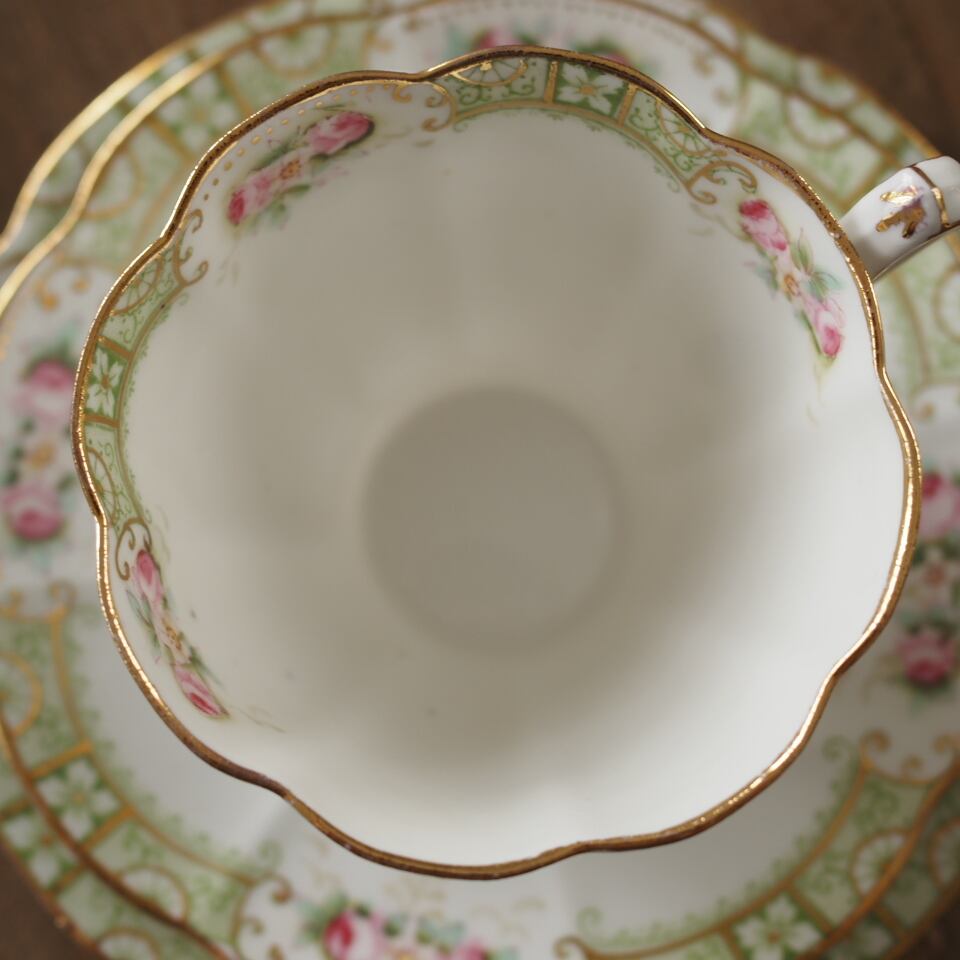 ウィリアムロウ グリーン×ピンクローズのアンティークトリオ カップ&ソーサー&プレート F5