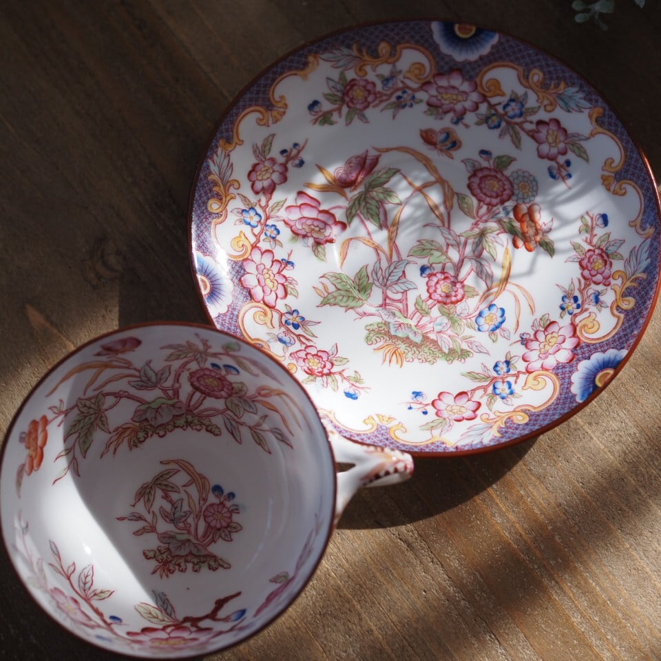 フランスサルグミンヌ窯製・イギリスMintonパターン カップ&ソーサー