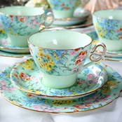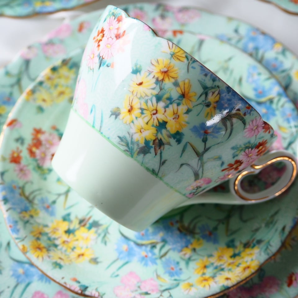 「メロディ」は、愛らしい小花が一面に広がり、まるで花畑の中でお茶を楽しんでいるかのような優雅な印象を与えます。軽やかでエレガントなフォルムと、シェリーならではの繊細な質感が、ティータイムを特別なものにしてくれるでしょう。