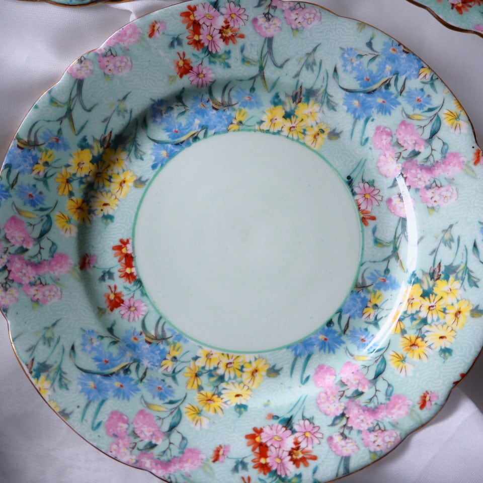 こちらの「メロディ」は、シェリーが得意とするチンツ柄の代表的なデザインのひとつです。チンツ柄とは、小花や植物が敷き詰められたような装飾スタイルで、19世紀のイギリスで大流行しました。その名の由来は、インド更紗(chintz)にあり、華やかで洗練された雰囲気が特徴です。