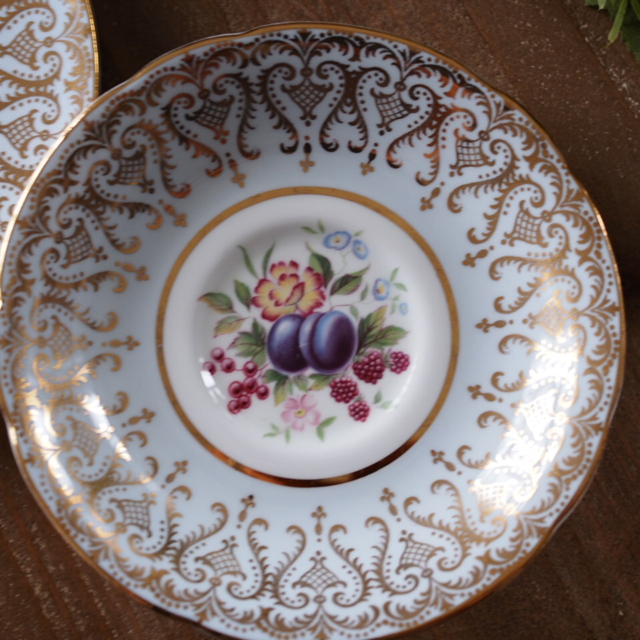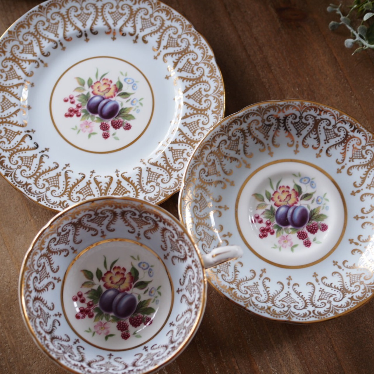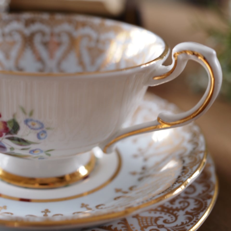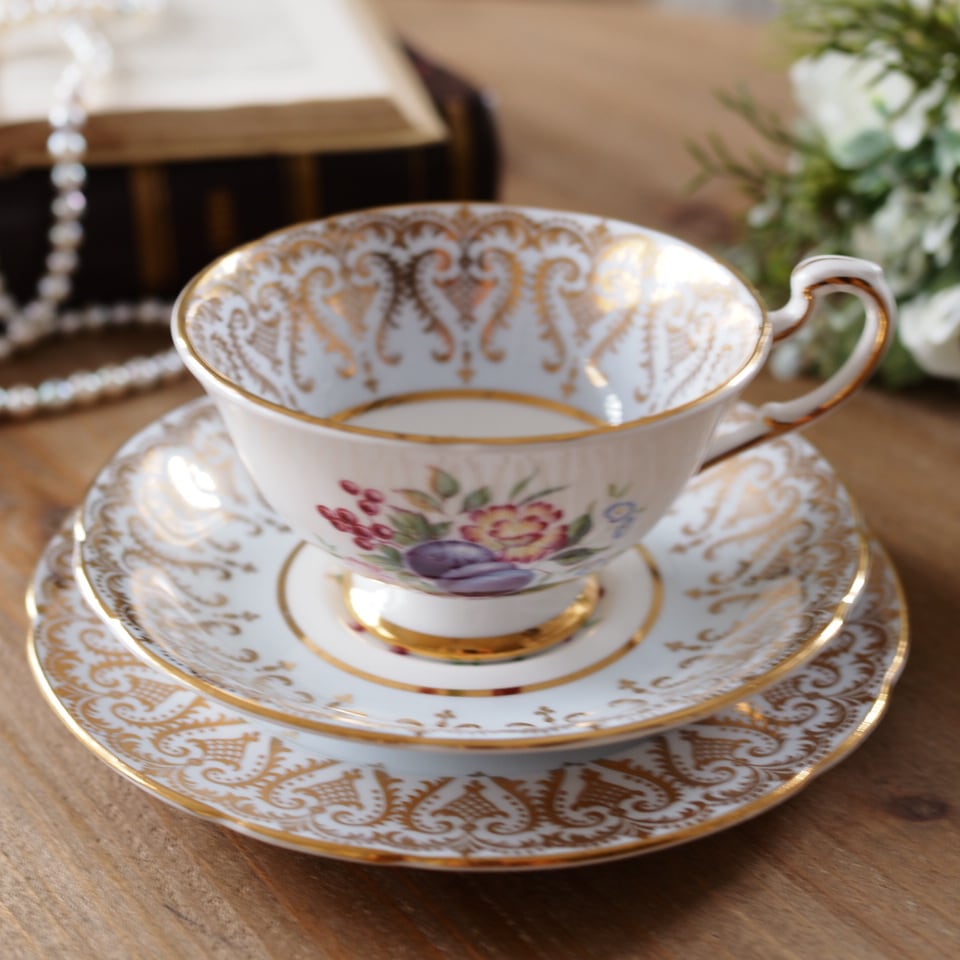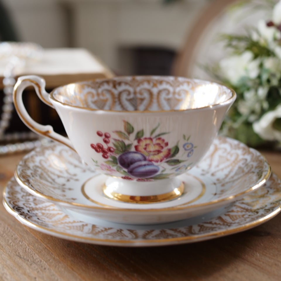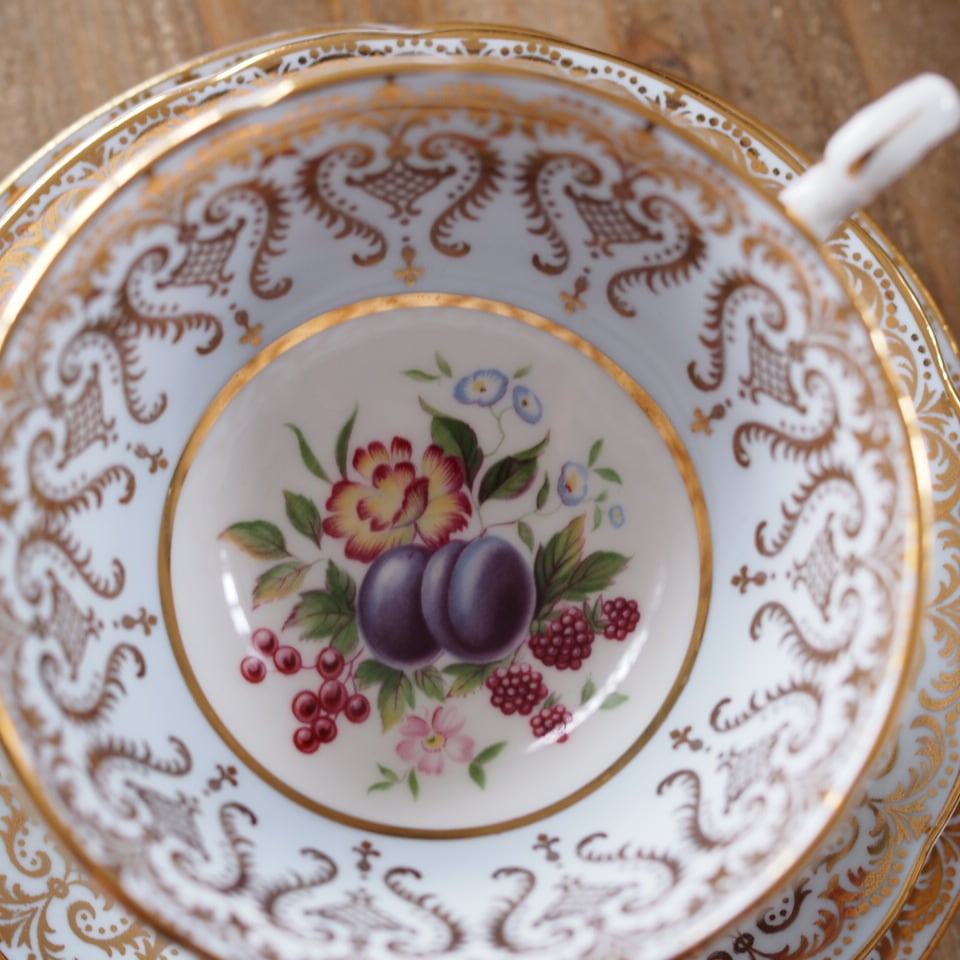 カップ内側に果実と花を描いた、パラゴンらしい華やかなトリオです。
