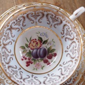 英国パラゴン 金彩果実文 フルーツ絵柄トリオ ブルー カップ&ソーサー F7