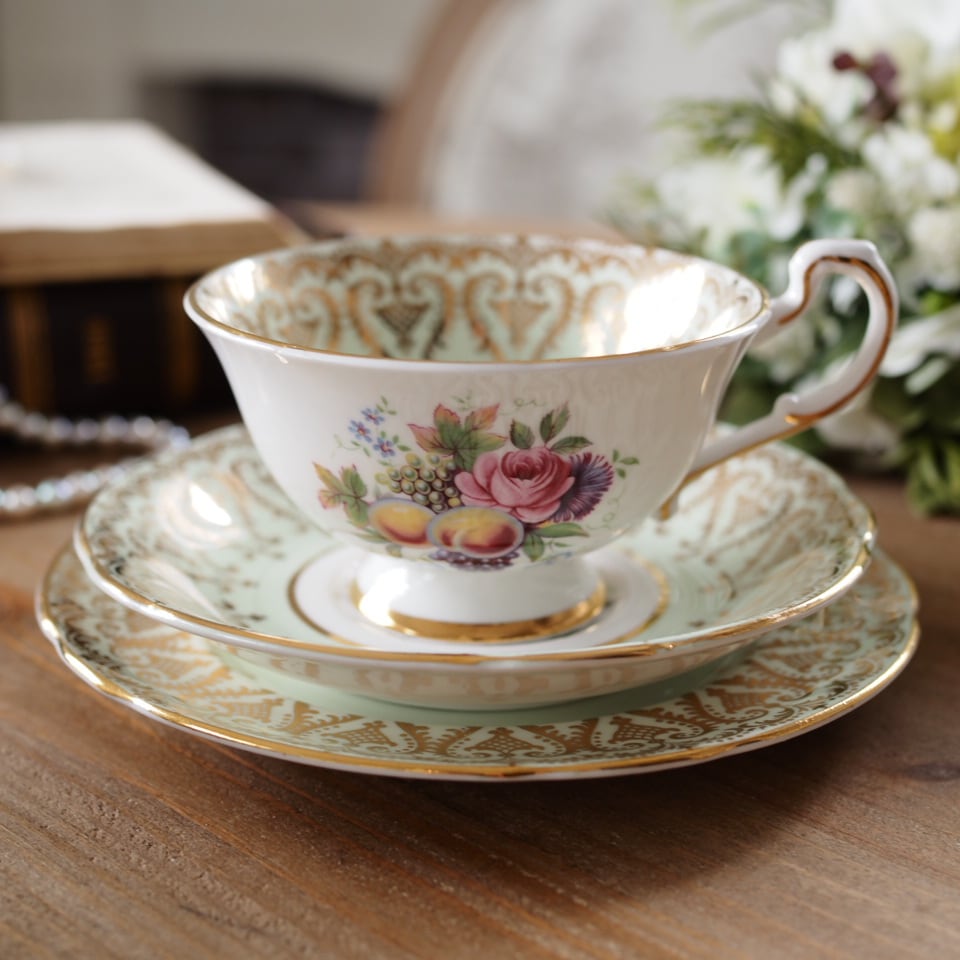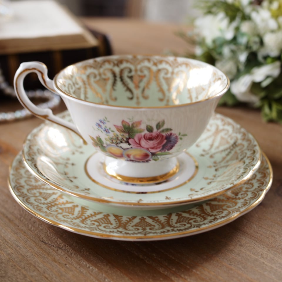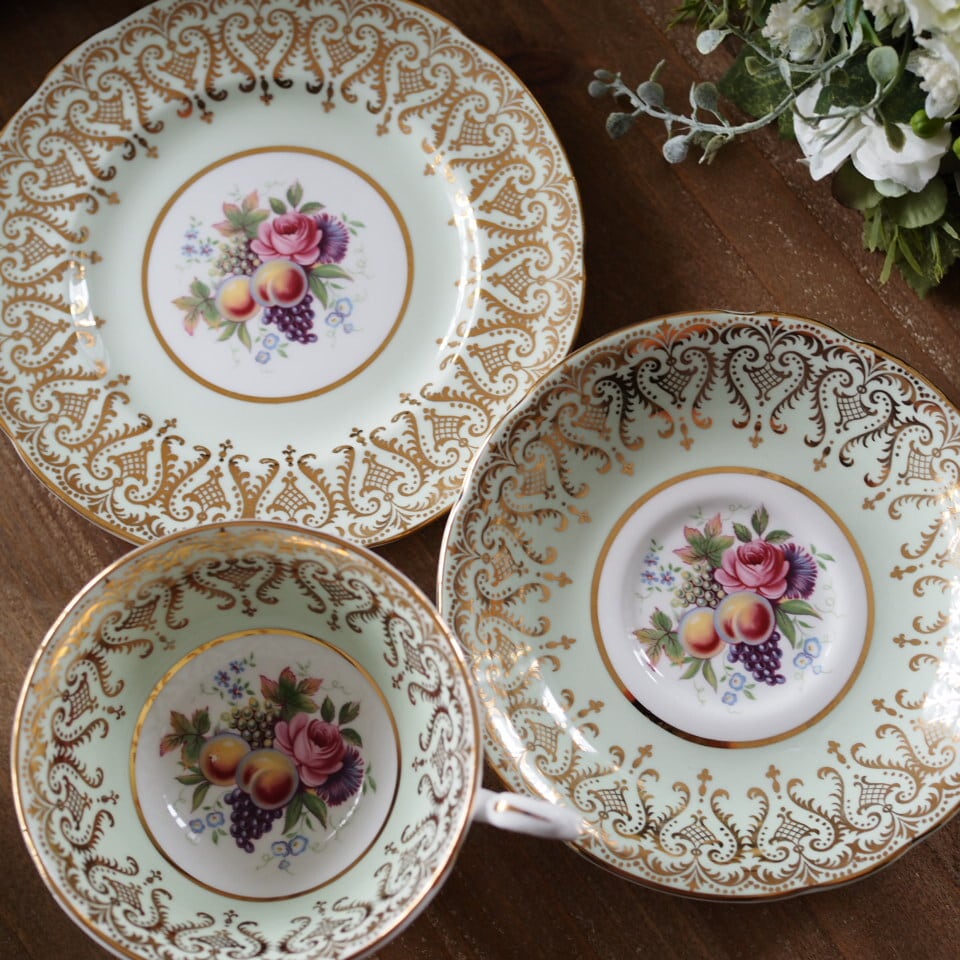 ~英国パラゴン 金彩果実文 フルーツ絵柄トリオ グリーン~