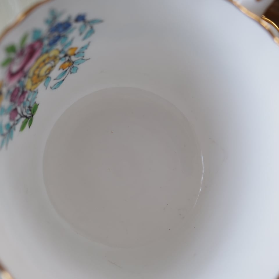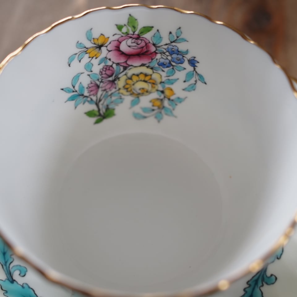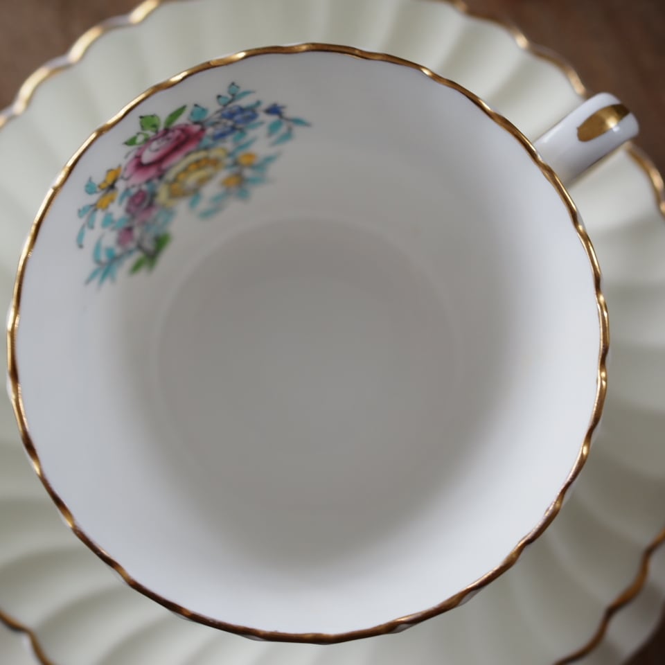 カップ内とプレート中央には可憐な小花ブーケが描かれています。